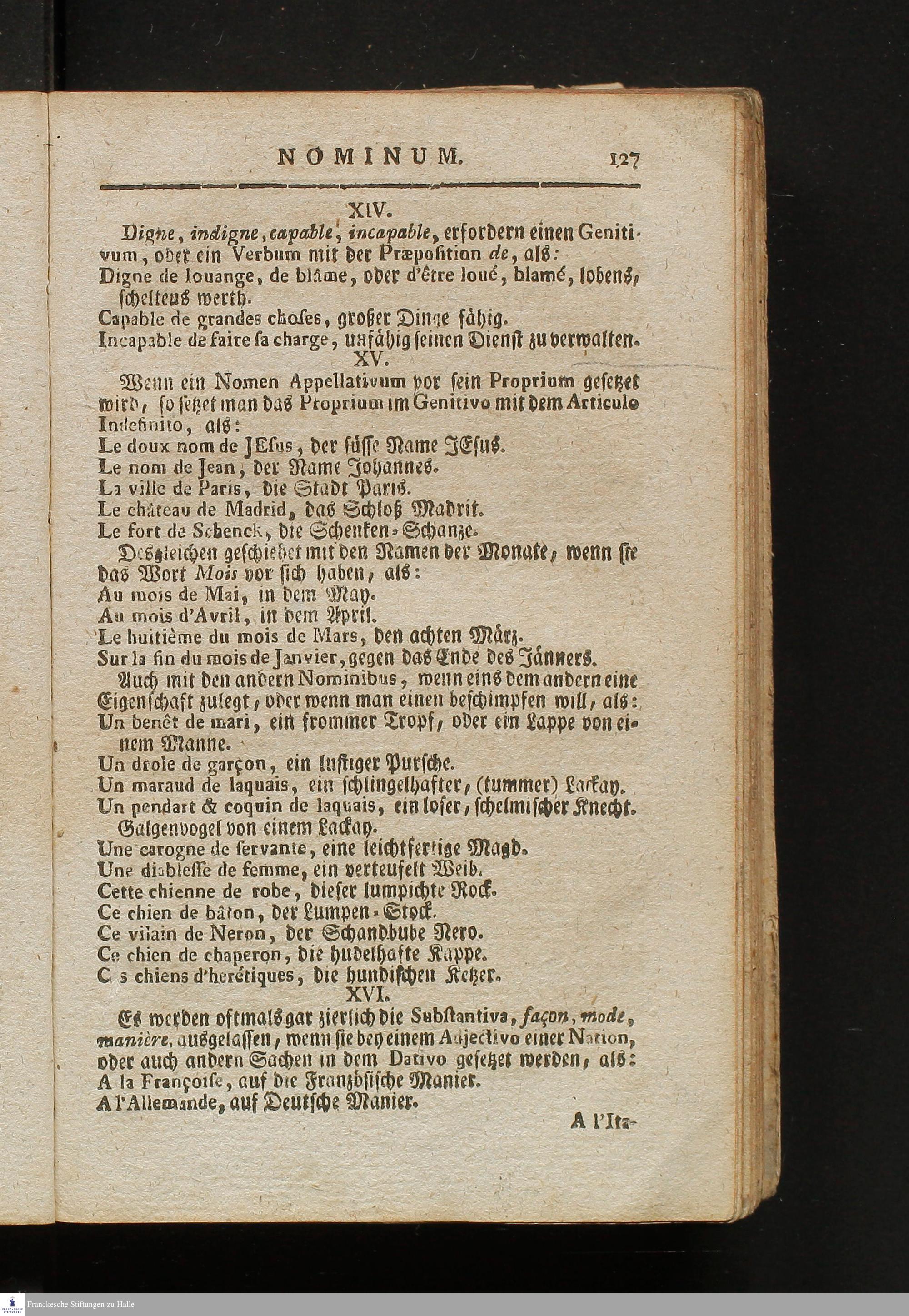 Neue und vollständige Königliche Französische Grammatica : Mit einem neu-eingerichteten Syntaxi, einem verbesserten Wörterbuche, manierlichen Gesprächen ... und nach jetziger Zeit wohlgesetzten Briefen : Bisher unter dem Nahmen des Herrn von Pepliers, vielmals herausgegeben, Gegenwärtig aber durchgehends aus des berühmten französischen Jesuiten, Hrn. Buffier, und anderer Gelehrten Anmerkungen auf das fleißigste verbessert, mit einem zulänglichen Unterricht von der .... Orthographie und Aussprache, einer .... Anweisung zur deutschen Titulatur, auch einem viel vergrösserten Churfl. Sächs. TitularBuche, aufs das neue übersehen, verbessert und vermehret