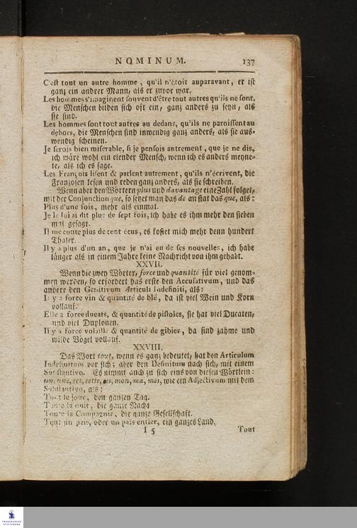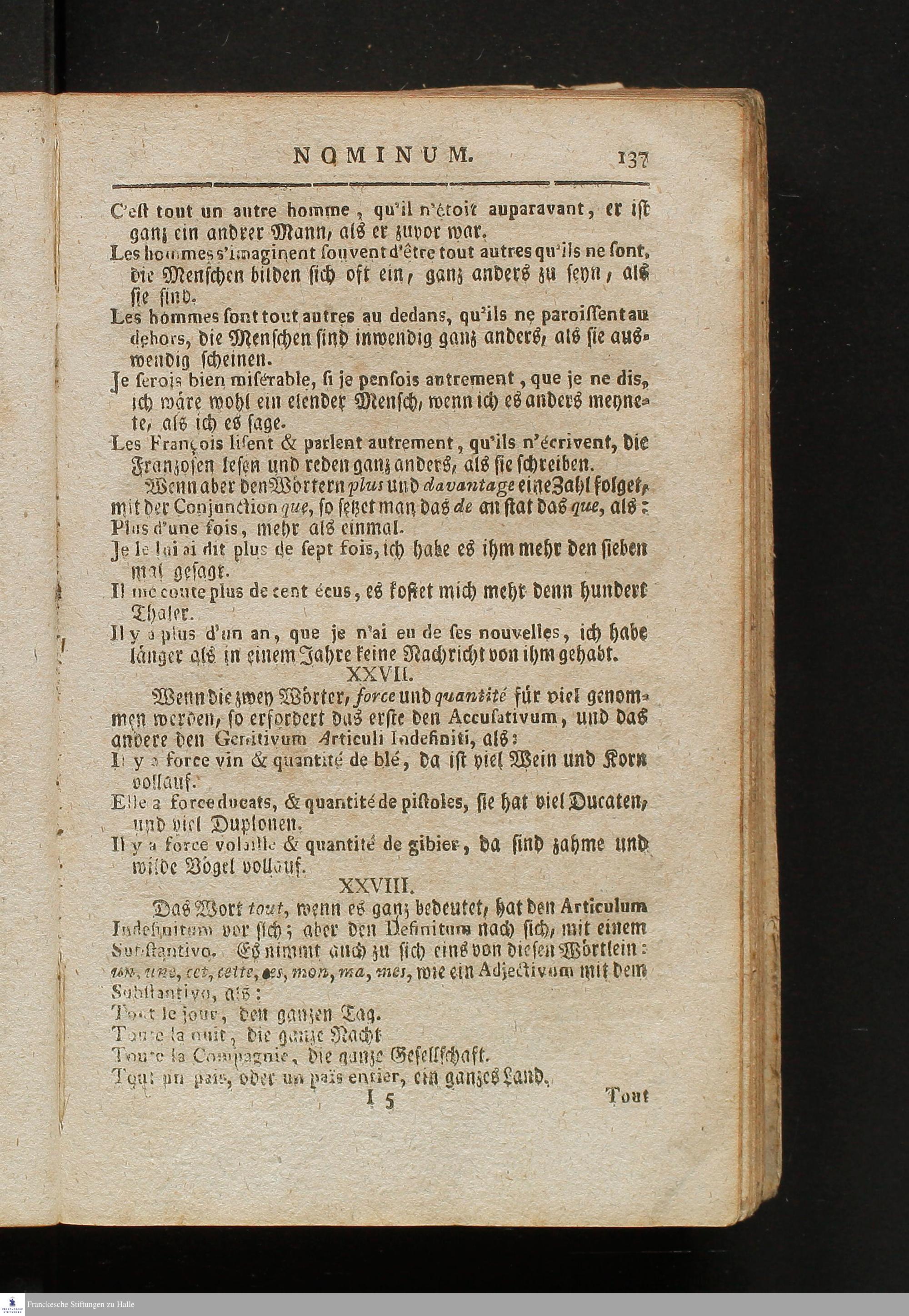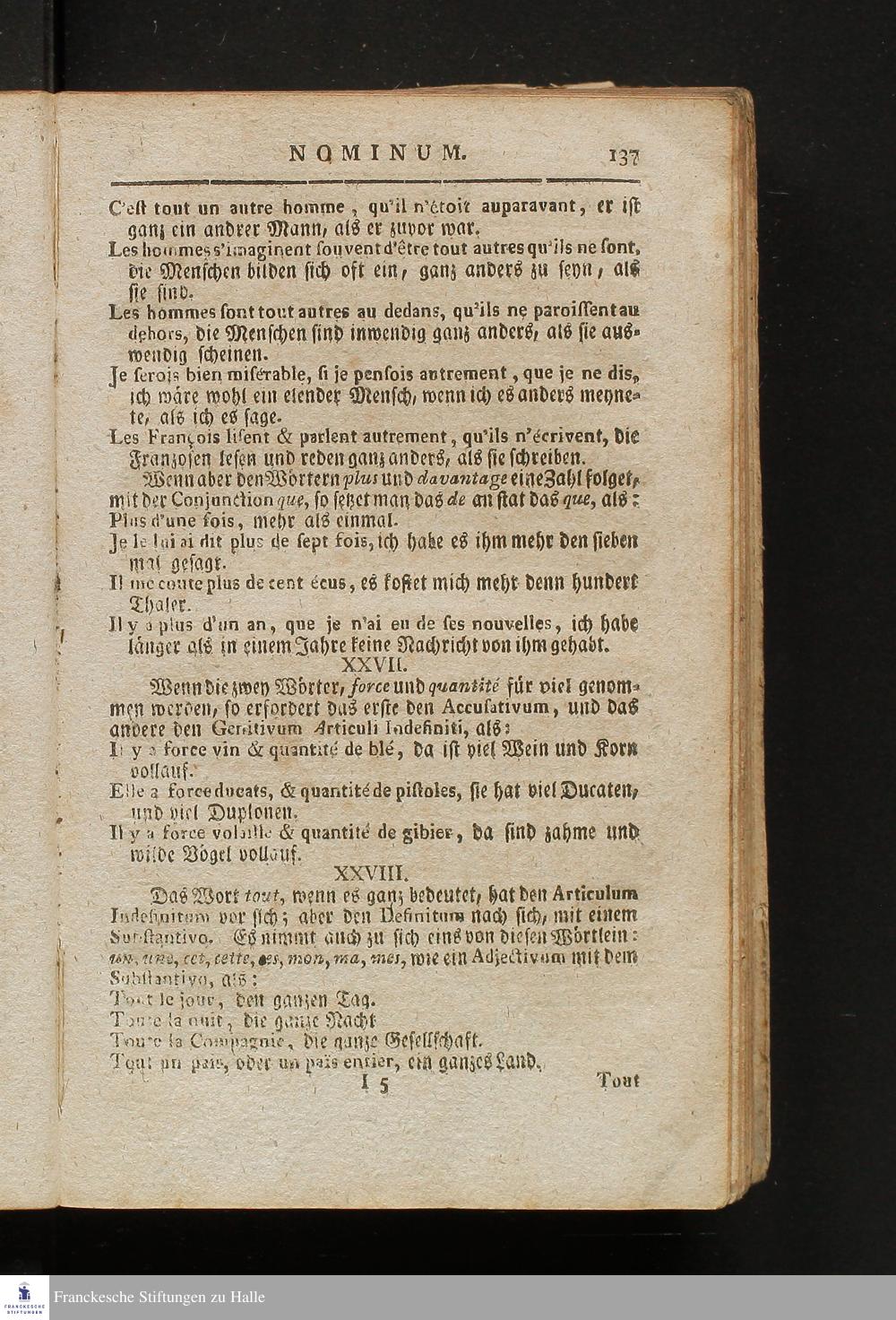Neue und vollständige Königliche Französische Grammatica : Mit einem neu-eingerichteten Syntaxi, einem verbesserten Wörterbuche, manierlichen Gesprächen ... und nach jetziger Zeit wohlgesetzten Briefen : Bisher unter dem Nahmen des Herrn von Pepliers, vielmals herausgegeben, Gegenwärtig aber durchgehends aus des berühmten französischen Jesuiten, Hrn. Buffier, und anderer Gelehrten Anmerkungen auf das fleißigste verbessert, mit einem zulänglichen Unterricht von der .... Orthographie und Aussprache, einer .... Anweisung zur deutschen Titulatur, auch einem viel vergrösserten Churfl. Sächs. TitularBuche, aufs das neue übersehen, verbessert und vermehret