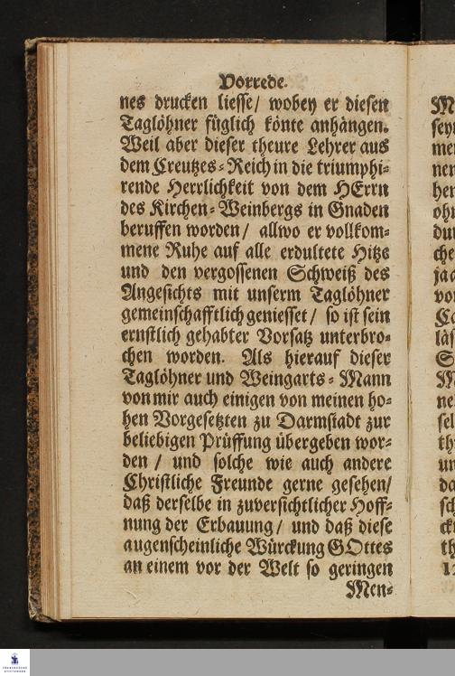 Der arme in GOtt aber reiche Tagelöhner; Das ist Merckwürdiger und sehr erbaulicher Lebens-Lauff Eines sehr arm und fromm gewesenen obschon Lesens-unerfahrnen Tagelöhners, Dieterich Grauwinckeln genannt/ Worinnen anzutreffen/ wie die übernatürliche Freuden-Kräffte der zukünfftigen Welt/ ... sich bey ihm in seiner schmertzlichen Kranckheit hervor gethan/ und was er ferner vor ein bedencklich- und feines Ende zur Christlichen Nachfolge von der Welt genommen / Aufgesetzet von Johannes Wolffen/ Etlich und zwantzig Jahr gewesenen Predigers zu Nordenstadt; zeitigen Pfarrer zu Grossen-Gerau und Metropolitano im Hochfürstl. Ober-Amte Rüsselsheim.