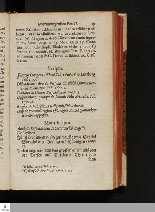 Pars II. (1709) Memoria Theologorum Wirtembergensium Resuscitata, h. e. Biographia Praecipuorum Virorum, qui à tempore Reformationis usque ad hanc nostram aetatem partim in Ducatu Wirtembergico Verbum Domini docuerunt, partim extra suam hanc Patriam vocati Ecclesiae Christi aliis in terris inservierunt