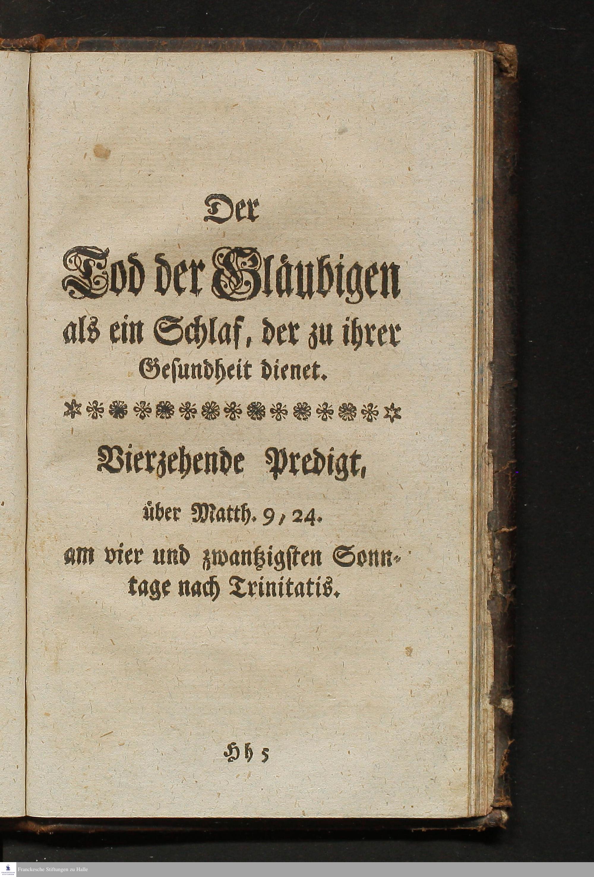 Der Tod der Gläubigen als ein Schlaf, der zu ihrer Gesundheit dienet. Vierzehende Predigt, über Matth. 9, 24. am vier und zwantzigsten Sonntage nach Trinitatis.