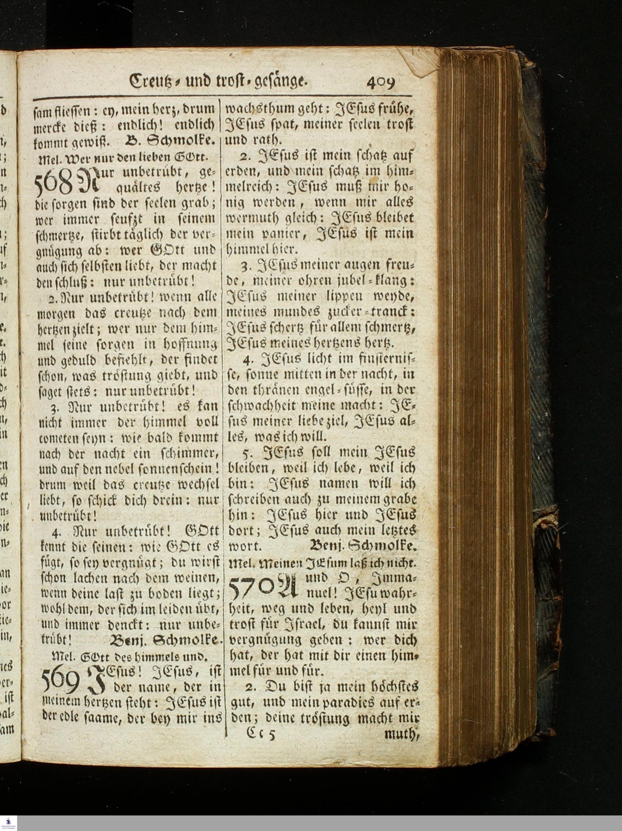 Andächtiger Seelen Vollständiges Gesang-Buch : Darinnen der Kern der schönsten Lieder Geistreicher Männer auf 1050 zu finden, Deren sich ein frommer Christ bey öffentlichem Gottesdienste In Chur- und Fürstl. Sächsischen Landen, besonders Ober-Lausitz, auch andern Evangelischen Orten, An Sonn- und Fest-Tagen, bey der Beichte und Heil. Abendmahl Begräbnissen, auch täglichen Haus-Andacht bedienen kann