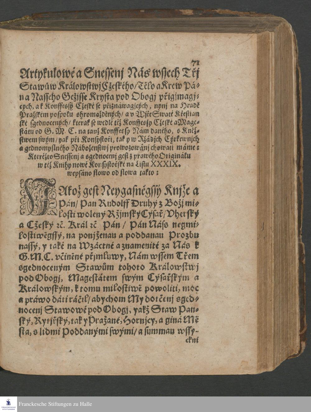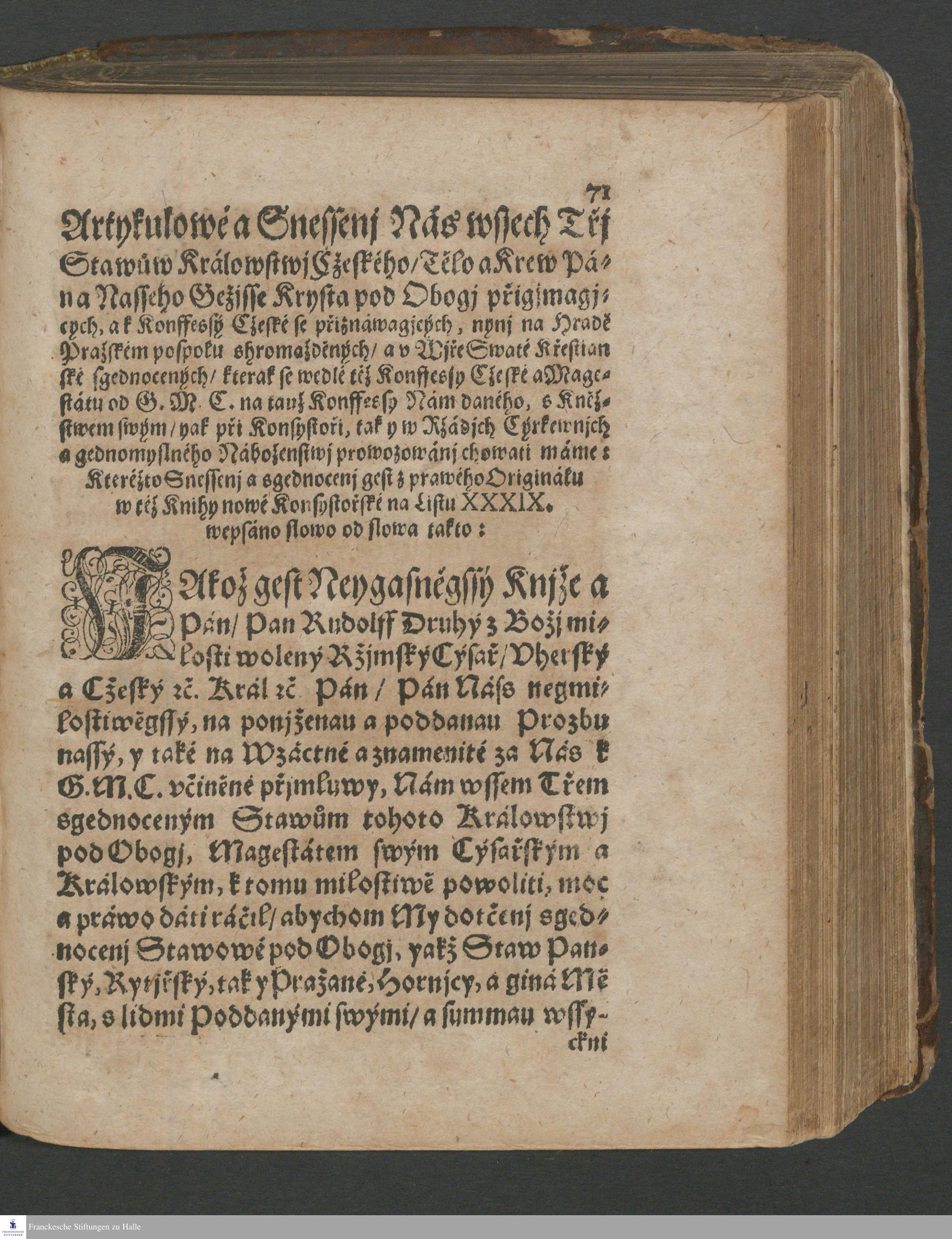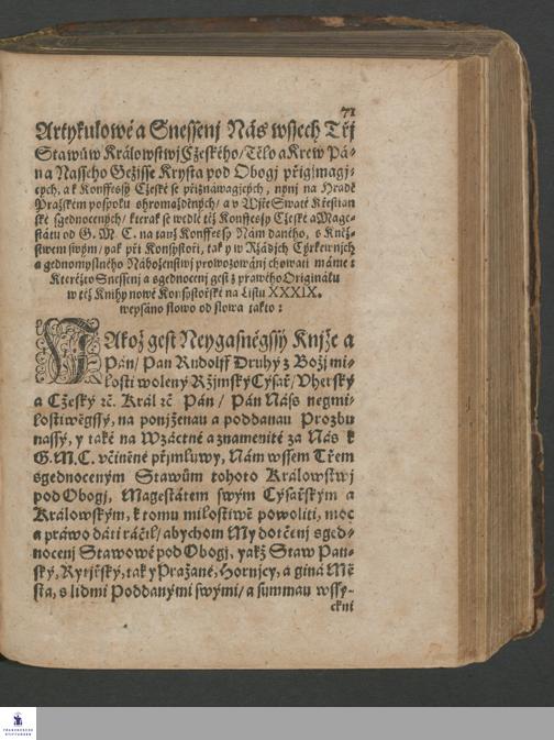 Konffessý Cžeská Totiž Wyznánj Wjry Swaté Křestianské wssech Třj Staw°uw Králowstwj Cžeského/ y Wjry Tělo a Krew Krysta Pána pod Obogj přigjmagjcých