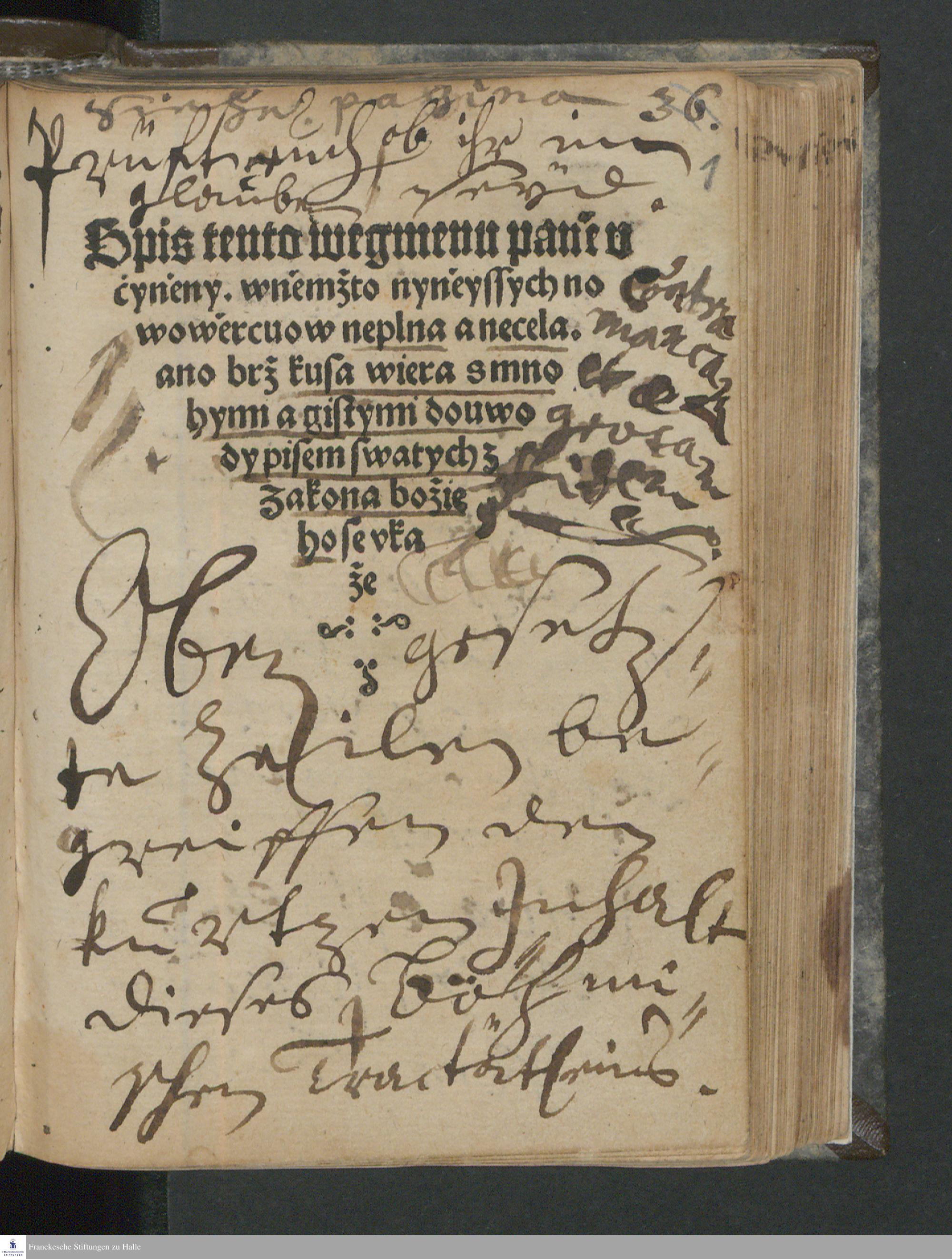 Spis tento wegmenu paně v čyněny. wněmžto nyněyssych no wowěrcuow neplna a necela. ano brž kusa wiera s mno hymi a gystymi duowo [!] dy pisem swatych z Zakona božie ho se vka že