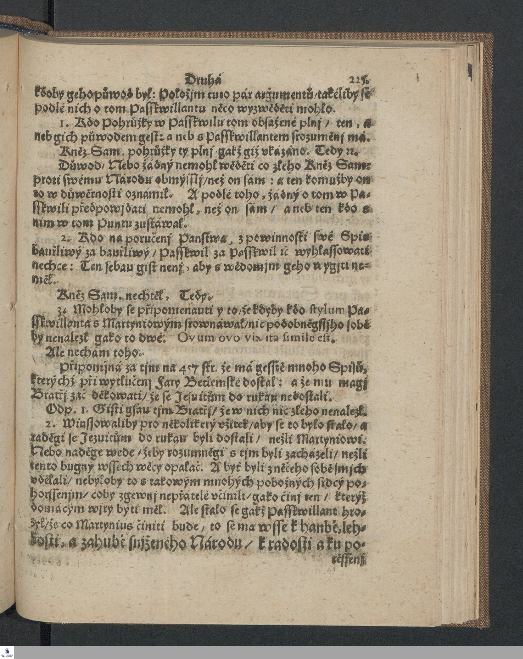 Rozebránj Spisu Druhého, Mistra Samuela Martynia ec. : Obranau Křestanskau nazwaného/ Kterýž proti Ohlássenj Starssjch Kněžj Gednoty Bratrské/ Léta 1636. sepsal a w°ubec wydal, Pro wygewenj křiwých Nářk°u, a odwedenj ned°uwodných hanénj, včiněné / od K. Jana Feljna