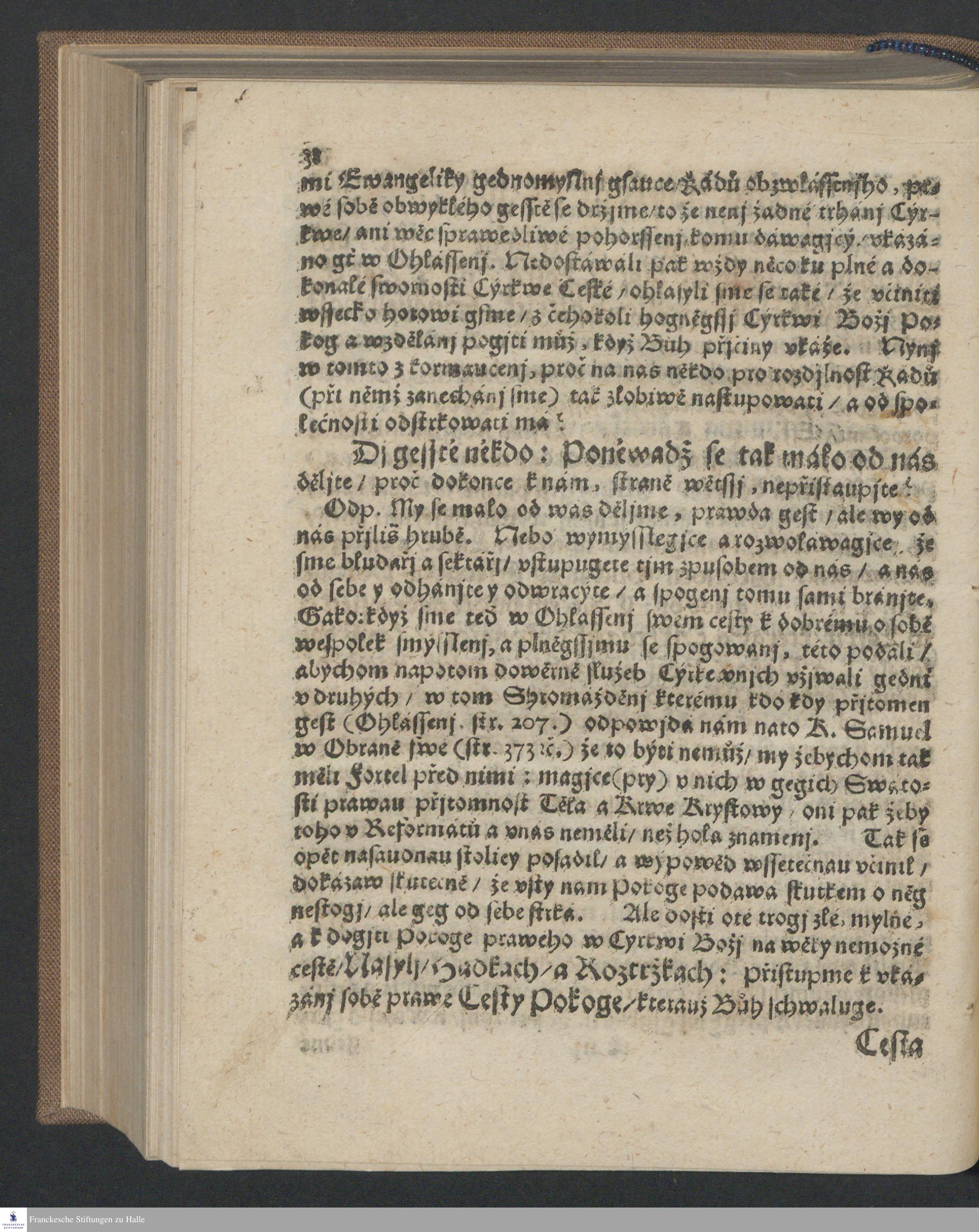 Cesta Pokoge to gest, Prawý, neomylný, gediný prostředek, kterýmž Cýrkew Božj w pokogi, swornosti, a lá̕sce, zachowáná [!] býti m°už: za přjcinau nepokogných Spis°u M. Samuele Martynia, z Pjsem Swatých wyhledaná, vkázaná, a wssechněm wěrným Cech°um podaná Od Starssjch knežj Gednoty Bratrské. ... / [Jan Amos Komenský]