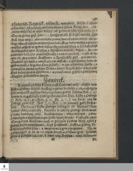 Cesta Pokoge to gest, Prawý, neomylný, gediný prostředek, kterýmž Cýrkew Božj w pokogi, swornosti, a lá̕sce, zachowáná [!] býti m°už: za přjcinau nepokogných Spis°u M. Samuele Martynia, z Pjsem Swatých wyhledaná, vkázaná, a wssechněm wěrným Cech°um podaná Od Starssjch knežj Gednoty Bratrské. ... / [Jan Amos Komenský]