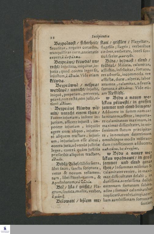 Quadrilingue Dictionarium: videlicet, Bohemo-Germanico & Latino-Græcum : unà cum Phrasibus, seu Linguæ Latinæ Elegantijs, ex probatissimis Authoribus collectis ...