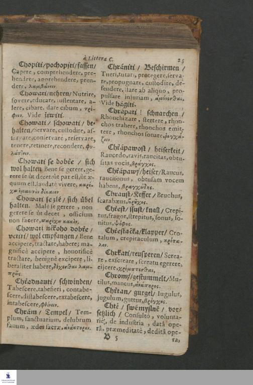 Quadrilingue Dictionarium: videlicet, Bohemo-Germanico & Latino-Græcum : unà cum Phrasibus, seu Linguæ Latinæ Elegantijs, ex probatissimis Authoribus collectis ...