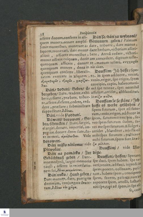 Quadrilingue Dictionarium: videlicet, Bohemo-Germanico & Latino-Græcum : unà cum Phrasibus, seu Linguæ Latinæ Elegantijs, ex probatissimis Authoribus collectis ...
