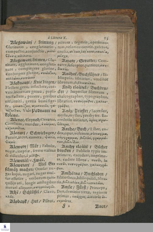 Quadrilingue Dictionarium: videlicet, Bohemo-Germanico & Latino-Græcum : unà cum Phrasibus, seu Linguæ Latinæ Elegantijs, ex probatissimis Authoribus collectis ...