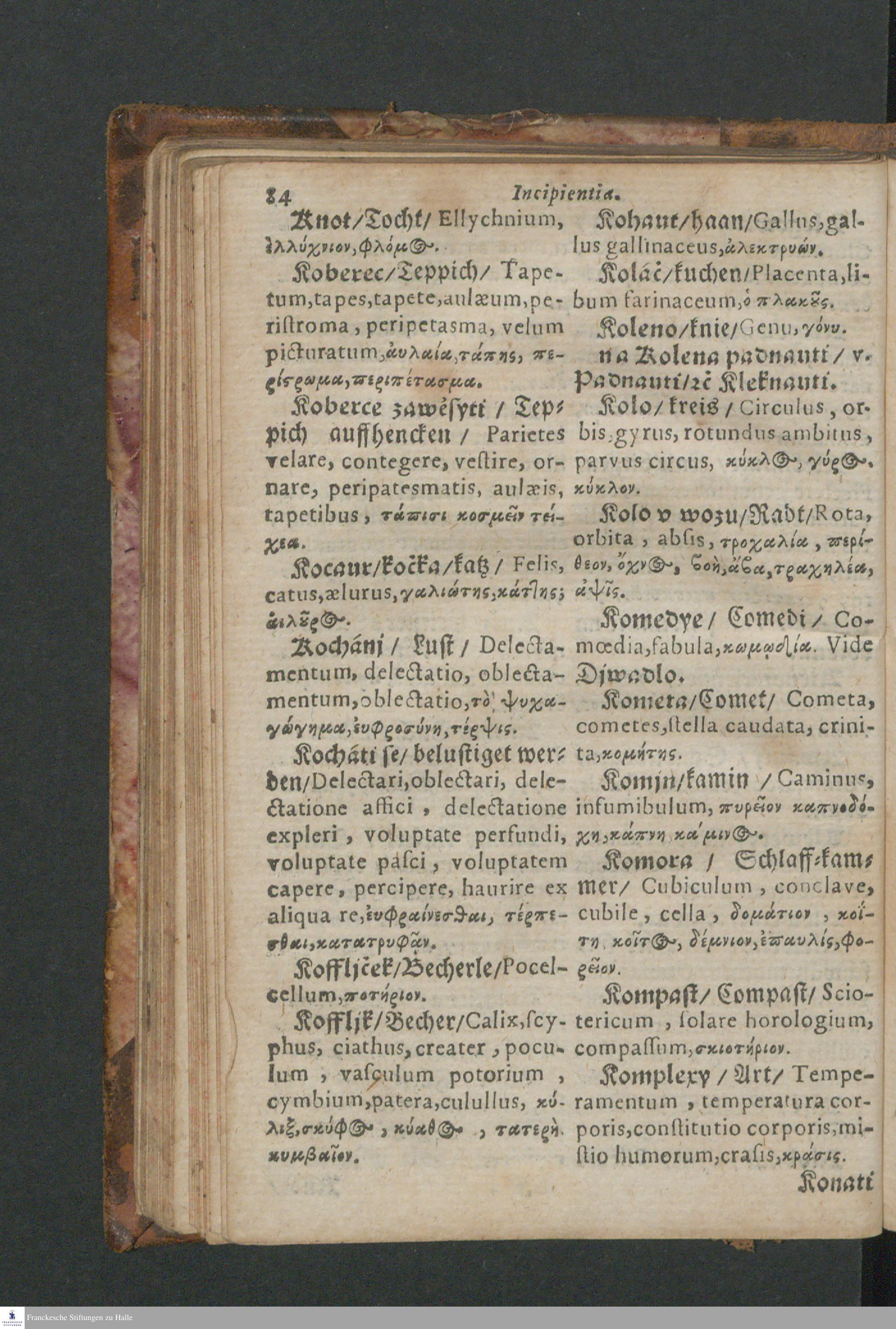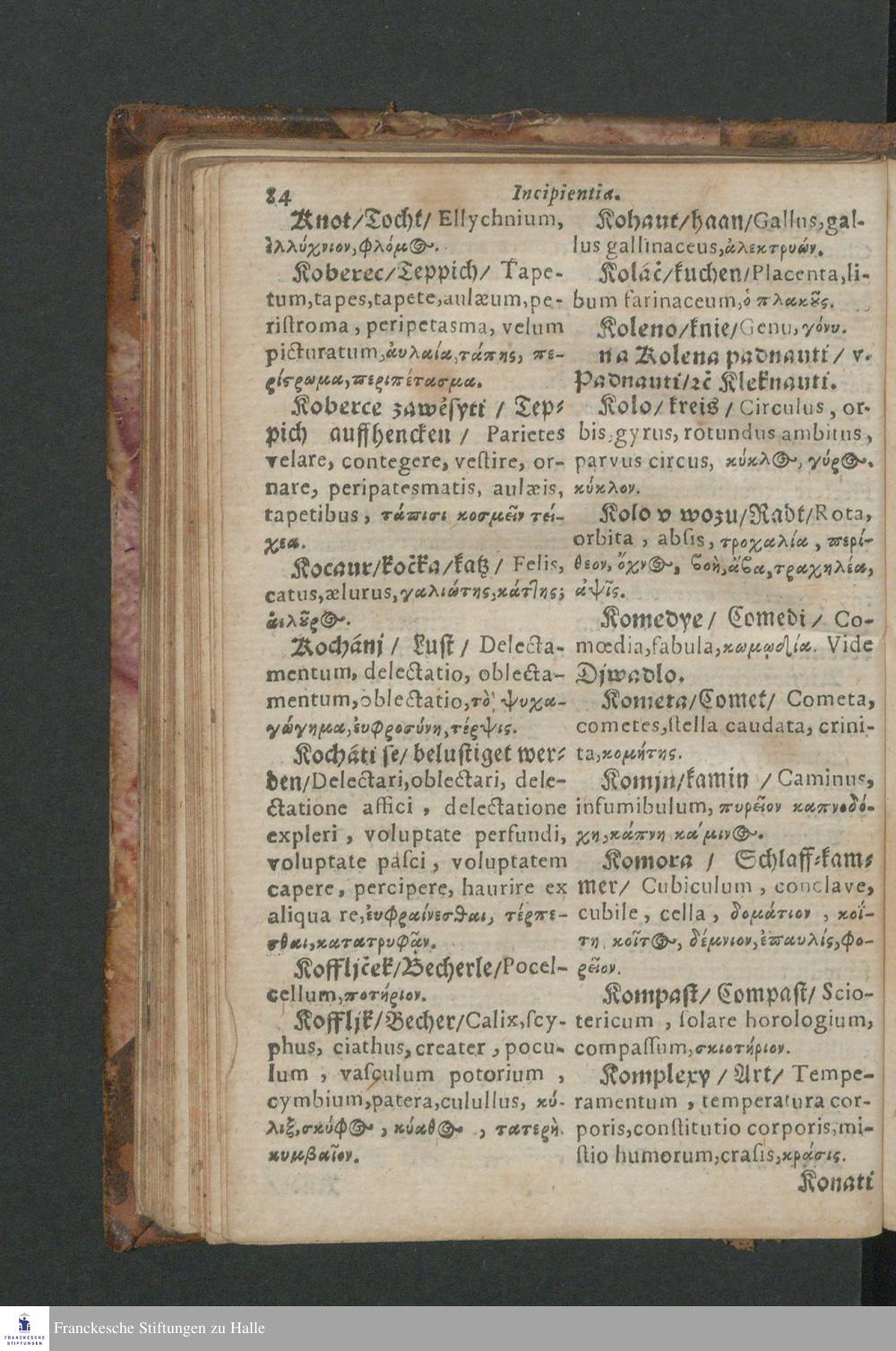 Quadrilingue Dictionarium: videlicet, Bohemo-Germanico & Latino-Græcum : unà cum Phrasibus, seu Linguæ Latinæ Elegantijs, ex probatissimis Authoribus collectis ...
