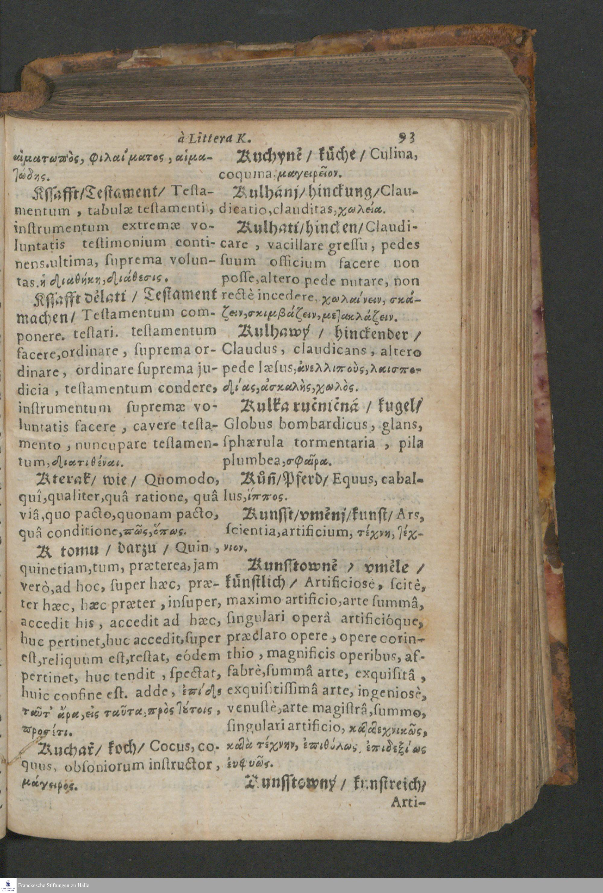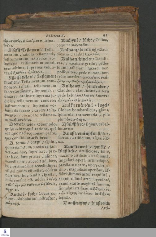 Quadrilingue Dictionarium: videlicet, Bohemo-Germanico & Latino-Græcum : unà cum Phrasibus, seu Linguæ Latinæ Elegantijs, ex probatissimis Authoribus collectis ...