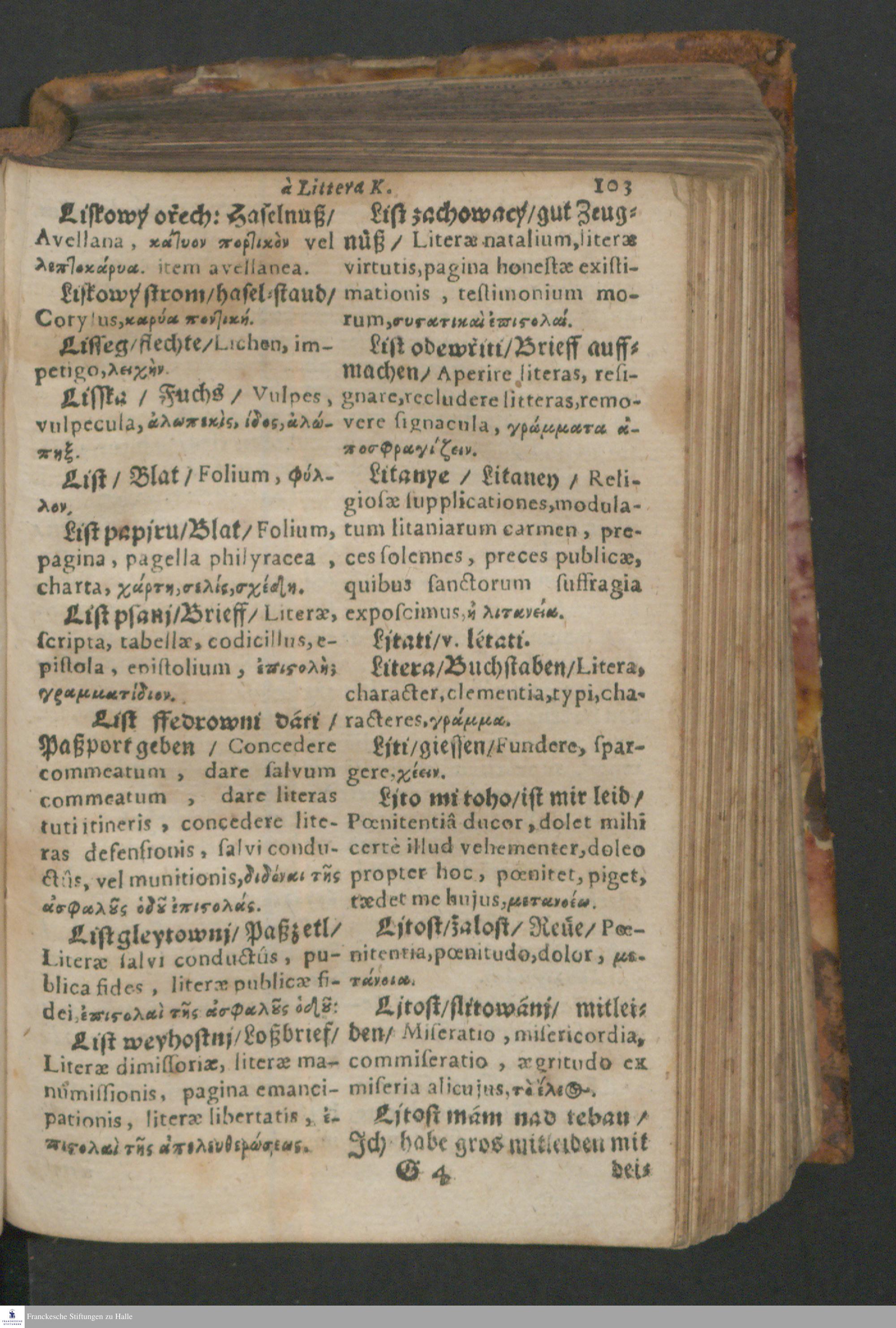 Quadrilingue Dictionarium: videlicet, Bohemo-Germanico & Latino-Græcum : unà cum Phrasibus, seu Linguæ Latinæ Elegantijs, ex probatissimis Authoribus collectis ...