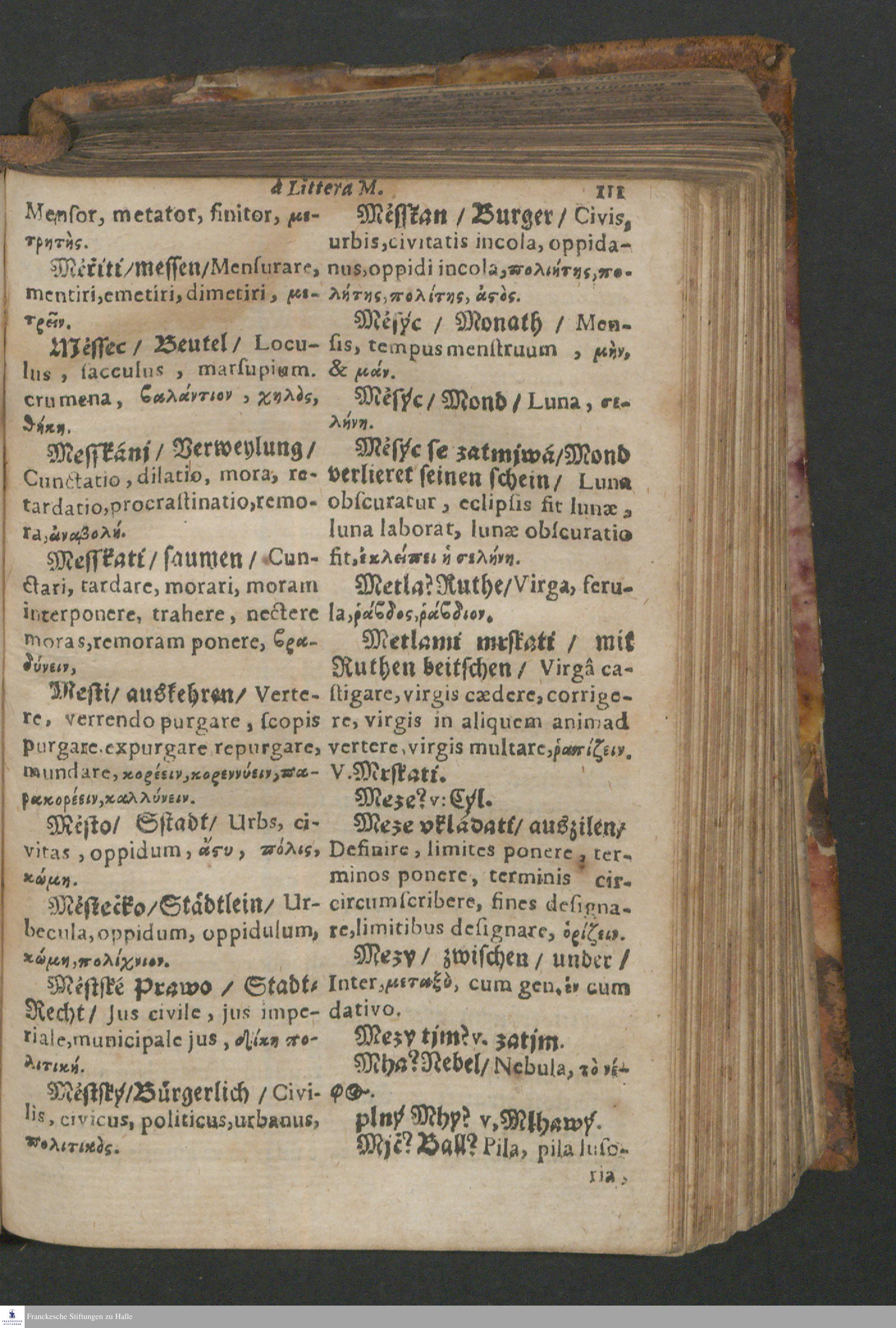 Quadrilingue Dictionarium: videlicet, Bohemo-Germanico & Latino-Græcum : unà cum Phrasibus, seu Linguæ Latinæ Elegantijs, ex probatissimis Authoribus collectis ...