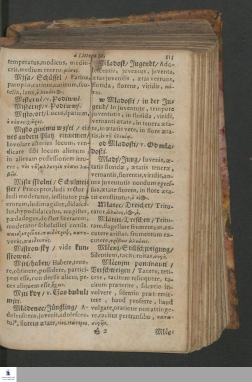 Quadrilingue Dictionarium: videlicet, Bohemo-Germanico & Latino-Græcum : unà cum Phrasibus, seu Linguæ Latinæ Elegantijs, ex probatissimis Authoribus collectis ...