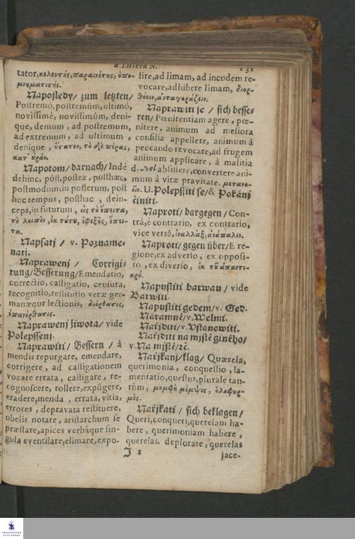 Quadrilingue Dictionarium: videlicet, Bohemo-Germanico & Latino-Græcum : unà cum Phrasibus, seu Linguæ Latinæ Elegantijs, ex probatissimis Authoribus collectis ...