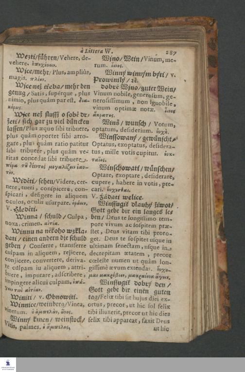 Quadrilingue Dictionarium: videlicet, Bohemo-Germanico & Latino-Græcum : unà cum Phrasibus, seu Linguæ Latinæ Elegantijs, ex probatissimis Authoribus collectis ...