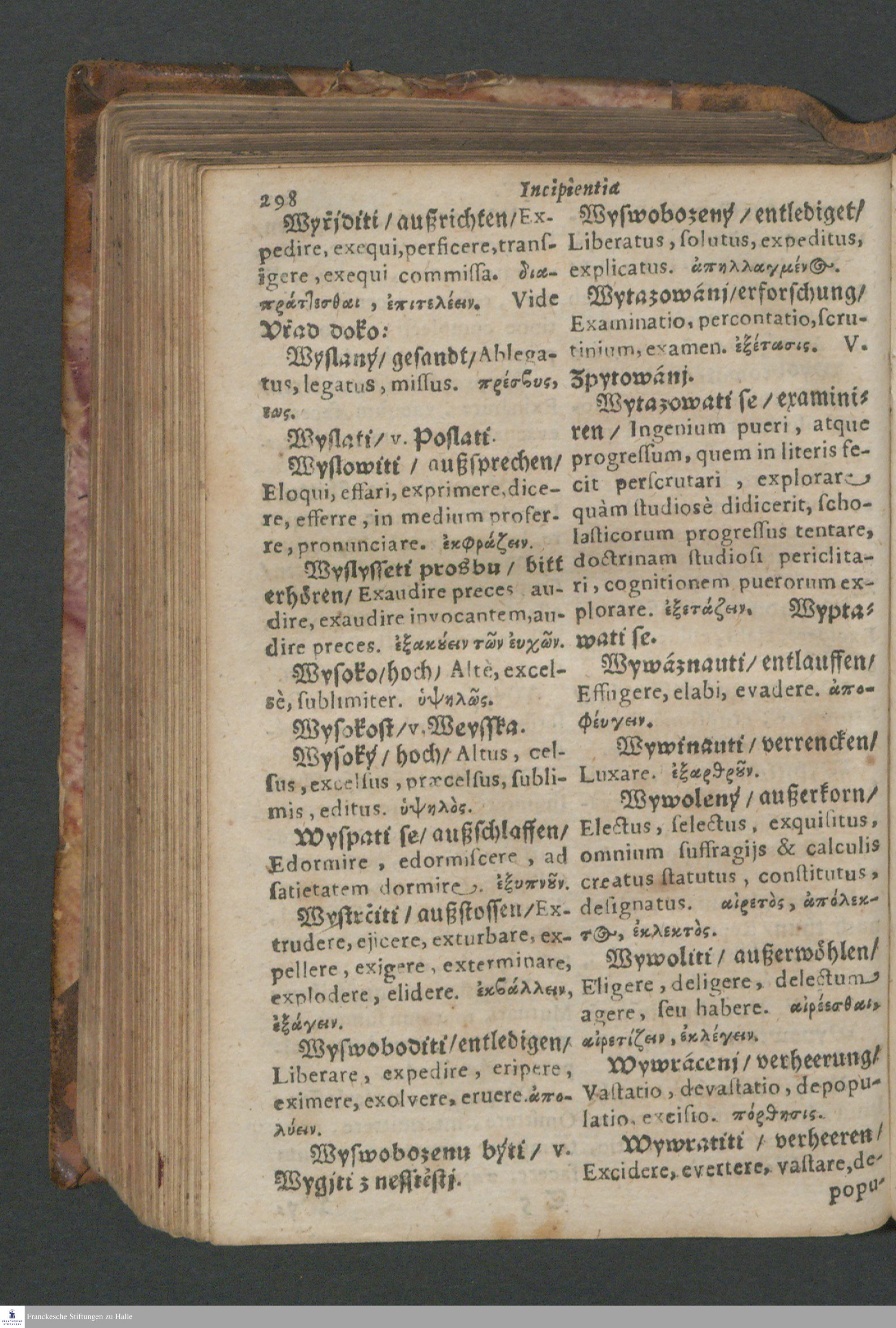 Quadrilingue Dictionarium: videlicet, Bohemo-Germanico & Latino-Græcum : unà cum Phrasibus, seu Linguæ Latinæ Elegantijs, ex probatissimis Authoribus collectis ...