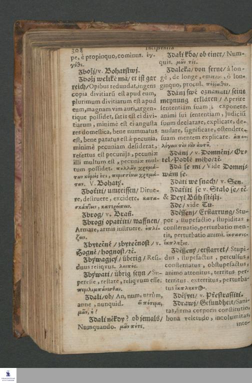 Quadrilingue Dictionarium: videlicet, Bohemo-Germanico & Latino-Græcum : unà cum Phrasibus, seu Linguæ Latinæ Elegantijs, ex probatissimis Authoribus collectis ...