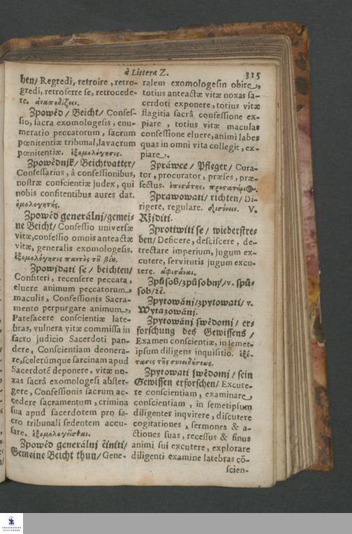 Quadrilingue Dictionarium: videlicet, Bohemo-Germanico & Latino-Græcum : unà cum Phrasibus, seu Linguæ Latinæ Elegantijs, ex probatissimis Authoribus collectis ...