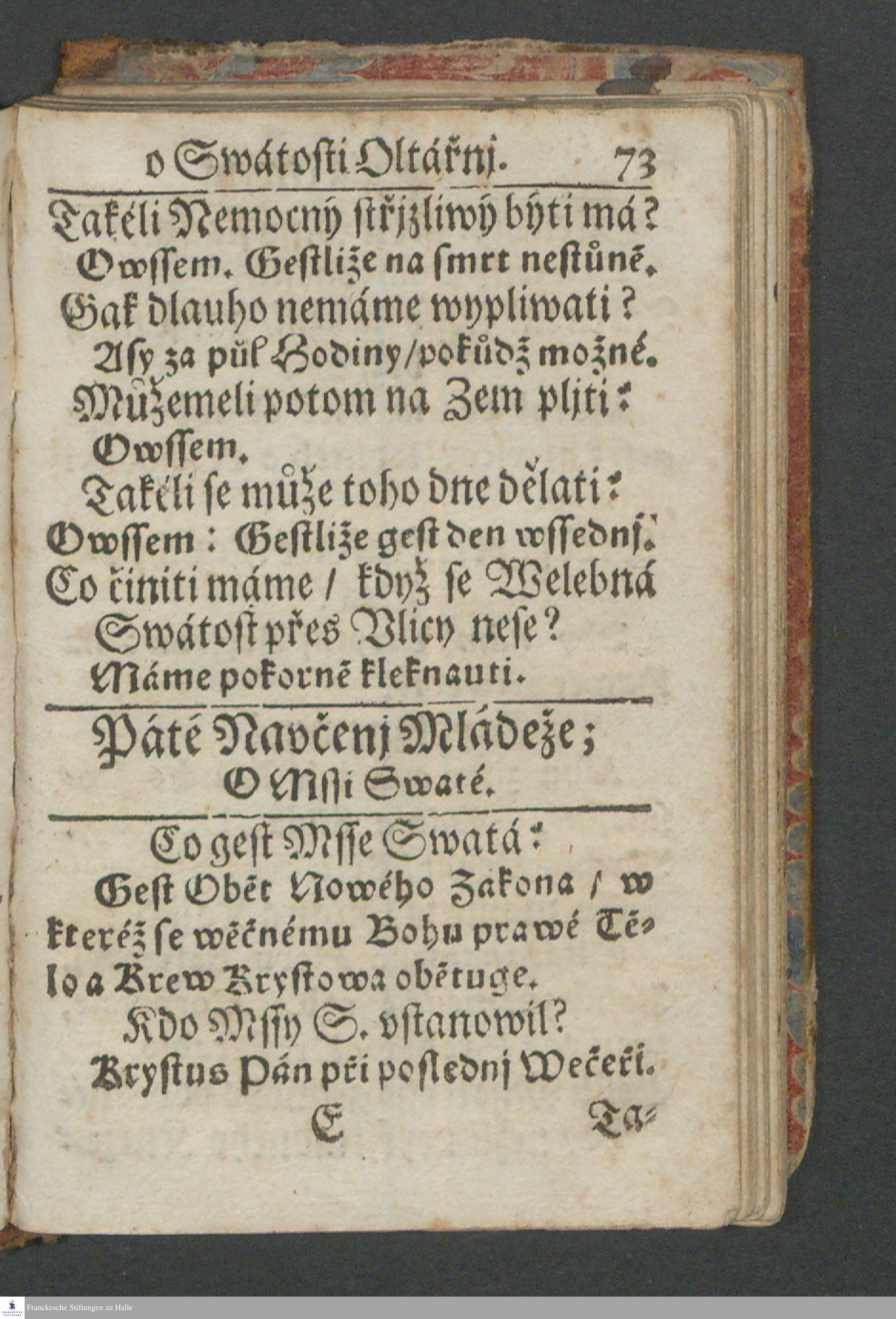 Křestianské Katolicke [!] Navčenj Mládeže : W němžse wssechno to/ co každý Křestian potřebně a vžitečně wěděti má/ w sedmi stech krátkých/ snadných a sprostných Otázkách a Odpowědjch/| obsahuge a zawjrá ; Cum Facultate Ordinarij