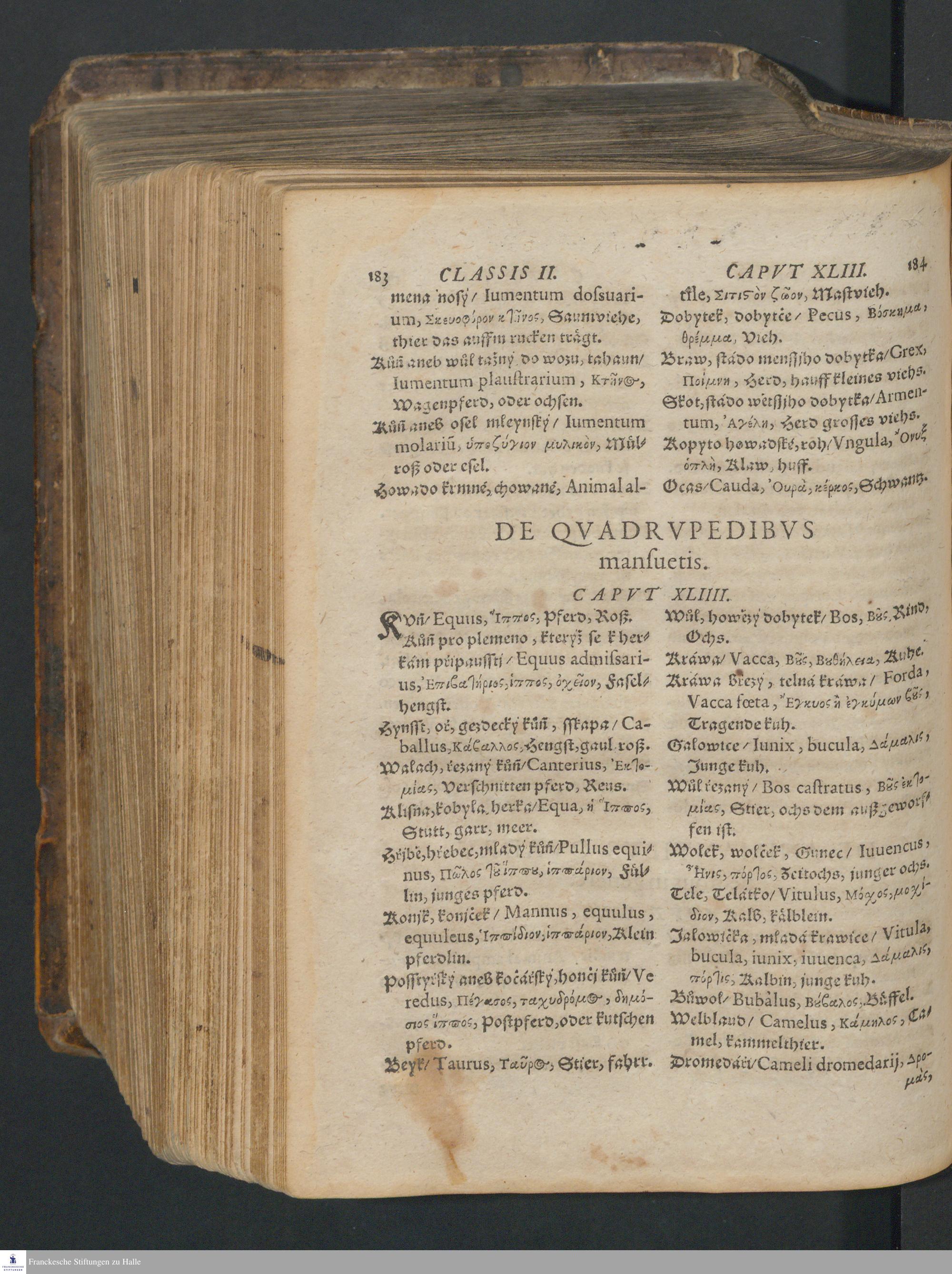 Nomenclator Qvadrilingvis BoemicoLatinoGraecoGermanicvs : Continens Omnivm Fermè rerum, quæ in probatis omnium doctrinarum autoribus inveniuntur, apellationes ; In Qvatvor Classes Distinctvs, Qvarvm Prima Est De Deo, secunda de Natura, tertia de Homine, quarta de Artibus ; In fine additi sunt duo Indices copiosißimi, Bohemicus & Latinus / In usum studiosæ Iuuentutis editus, studio, opera & sumptibus M. Danielis Adami á VVeleslavina