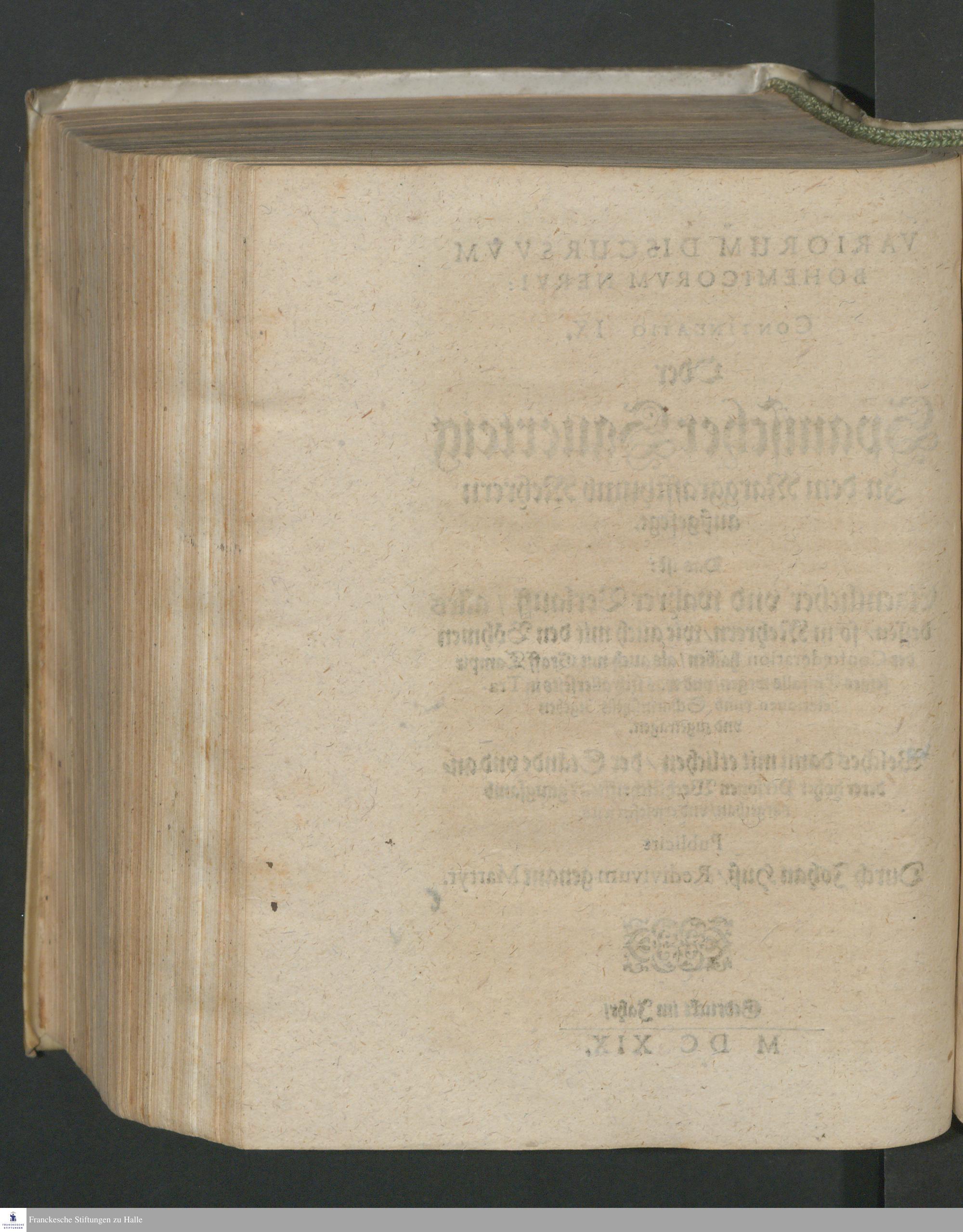 Continuatio IX. (1619) Variorum Discursuum Bohemicorum Nervi: Continuatio IX. Oder Spanischer Sauerteig In dem Marggraffthumb Mehrern außgefegt. Das ist: Eigentlicher vnd wahrer Verlauff/ alles dessen/ so in Mehrern/ wie auch mit den Böhmen der Confœderation halben/ als auch mit Graff Tampir seines Einfalls wegen/ vnd was sich allerseits in Tractationen vnnd Scharmützeln begeben vnd zugetragen : Welches dann mit etlichen/ der Stände vnd anderer hoher Personen Wechselchrifften/ gnugsamb dargethan/ vnd erwiesen wird / Publicirt Durch Johan Huß/ Redivivum genant Martyr