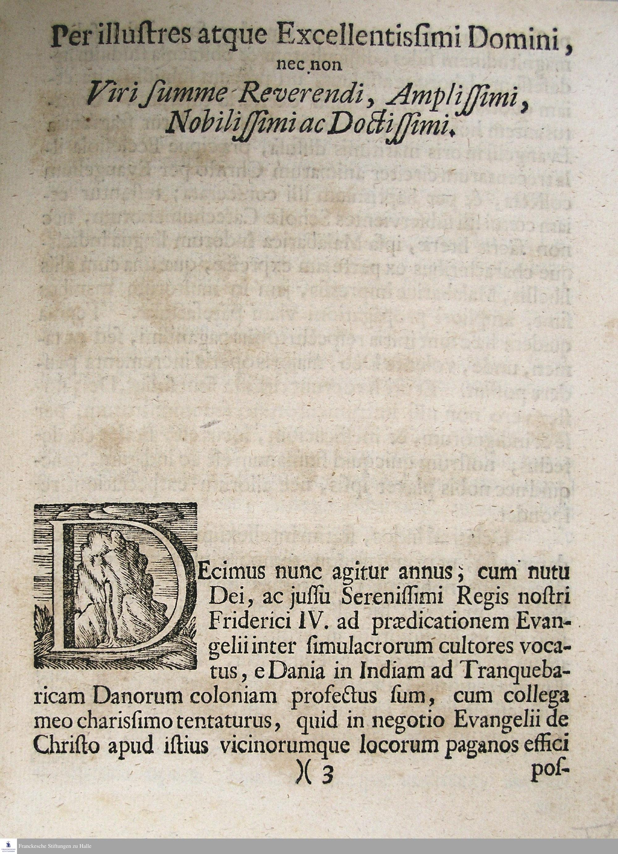 Grammatica Damulica, Quæ per varia paradigmata, regulas & necessarium vocabulorum apparatum, Viam Brevissimam monstrat, Qua Lingua Damulica Seu Malabarica, quæ inter Indos Orientales in usu est, & hucusque in Europa incognita fuit, facile disci posit : in Usum eorum Qui hoc tempore gentes illas ab idololatria ad cultum veri Dei, salutumque æternam Evangelio Christi perducere cupiunt: In itinere Europæo, seu in nave Danica concinnata / a Bartholomæo Ziegenbalg, Serenissimi Regis Daniæ Missionario inter Indos Orientales, & ecclesiæ ex Indis collectæ Præposito