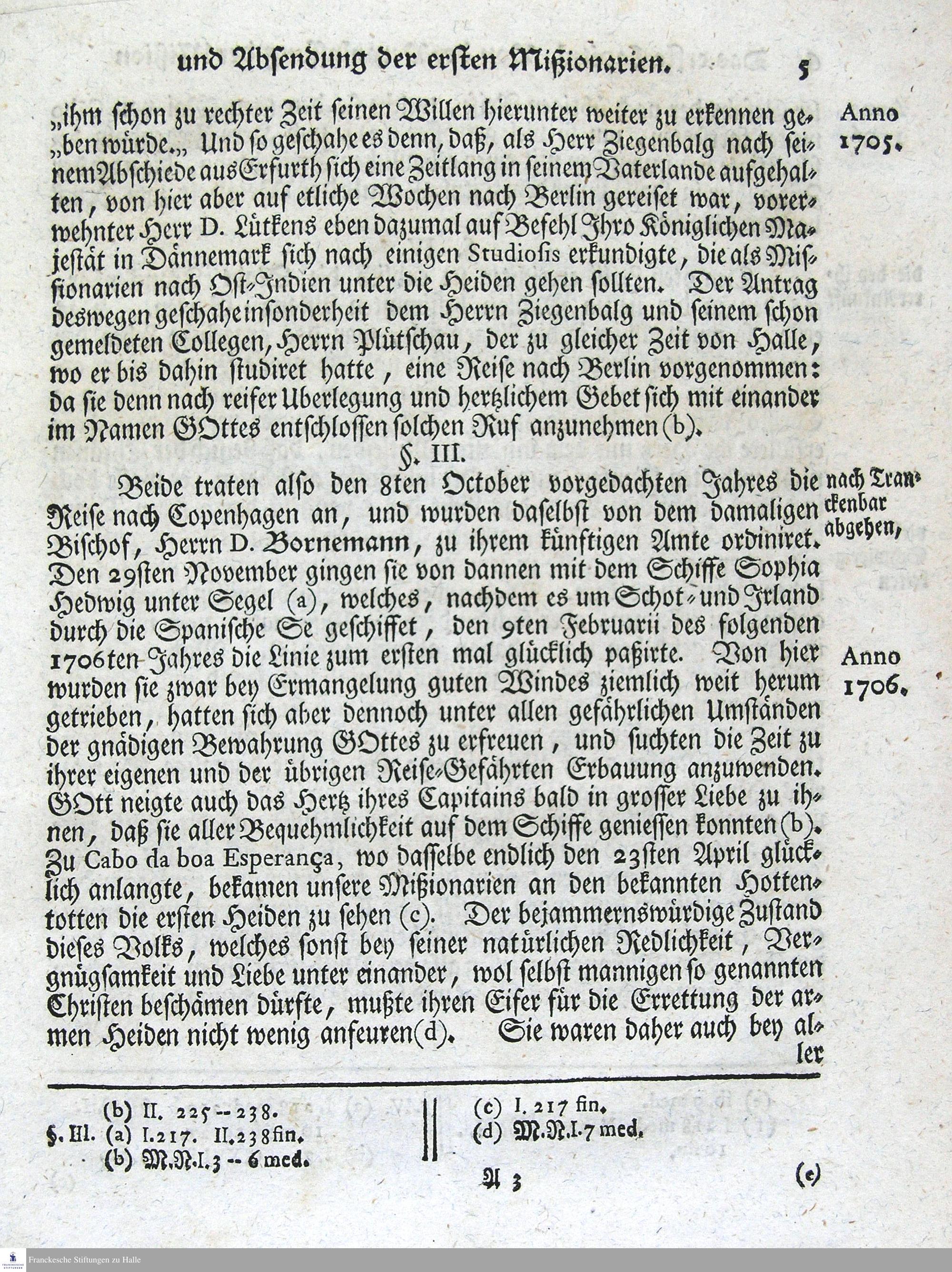 Theil 1 (1740) Von dem Jahr 1705 bis zu Ende des Jahres 1736 : Mit zwey dazu nöthigen Land-Charten Und einer Vorrede Herrn Gotthilf August Franckens, SS. Theol. Doct. und Prof. Publ. Ord. der ersten Dioeces des Saal-Creyses Inspectoris und Pred. zur L. Fr.