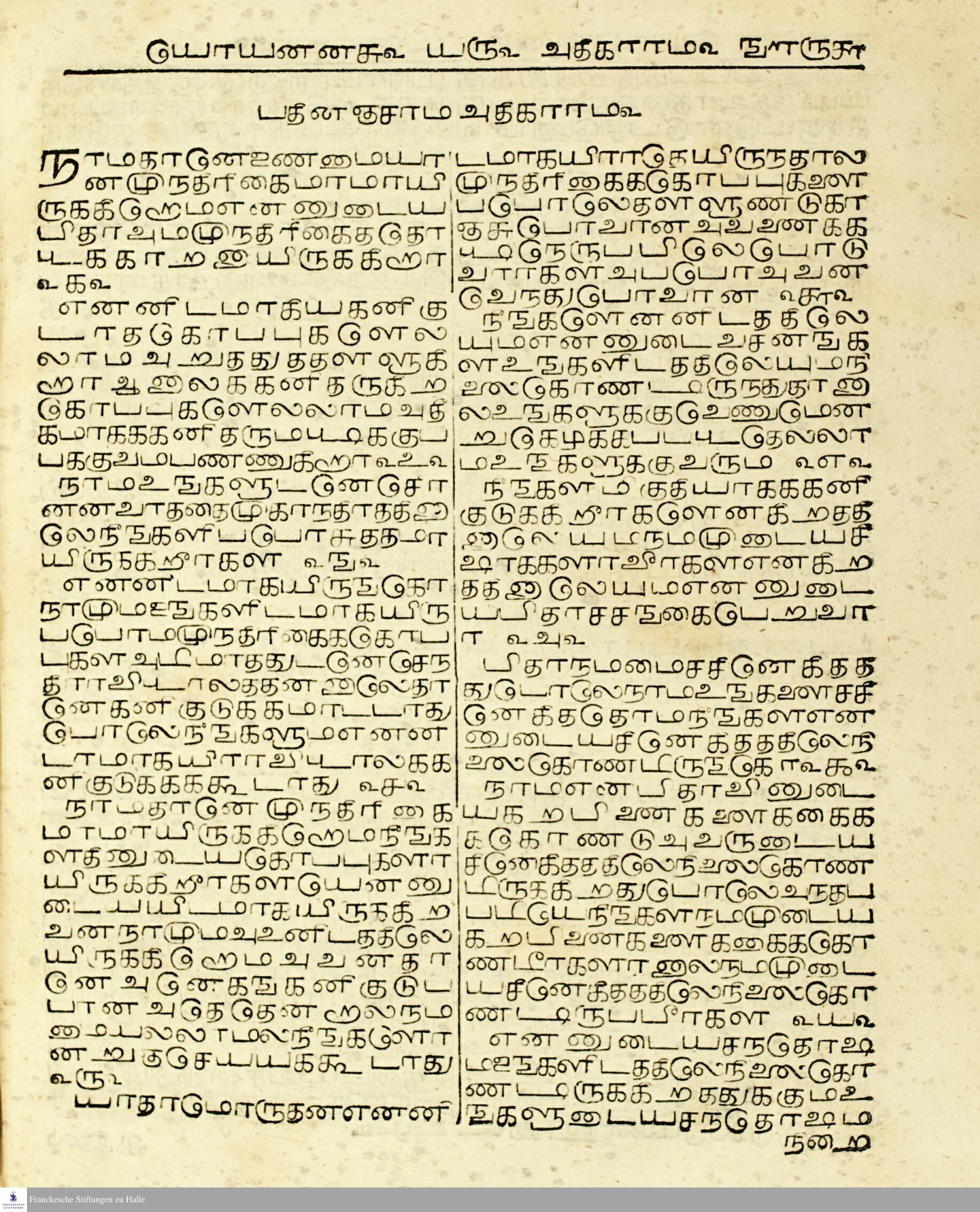 Quatuor Evangelia Et Acta Apostolorum Ex Originali Textu In Linguam Damulicam Versa In Usum Gentis Malabaricae / Opera Barth. Ziegenbalg & Jo. Ern. Gründler, Serenissimi Daniæ Regis Friderici IV. ad Indos Orientales Missionariorum