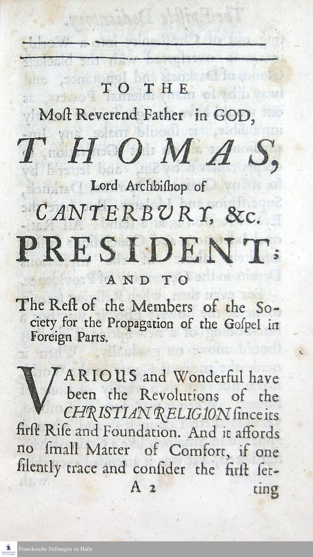 Propagation of the Gospel in the East : Being An Account of the Success Of Two Danish Missionaries, Lately sent to the East-Indies, For The Conversion Of Thf [!] Heathens in Malabar ; In several Letters to their Correspondents in Europe ... / [Bartholomäus Ziegenbalg; Heinrich Plütschau; Hrsg.: Anton Wilhelm Böhme]