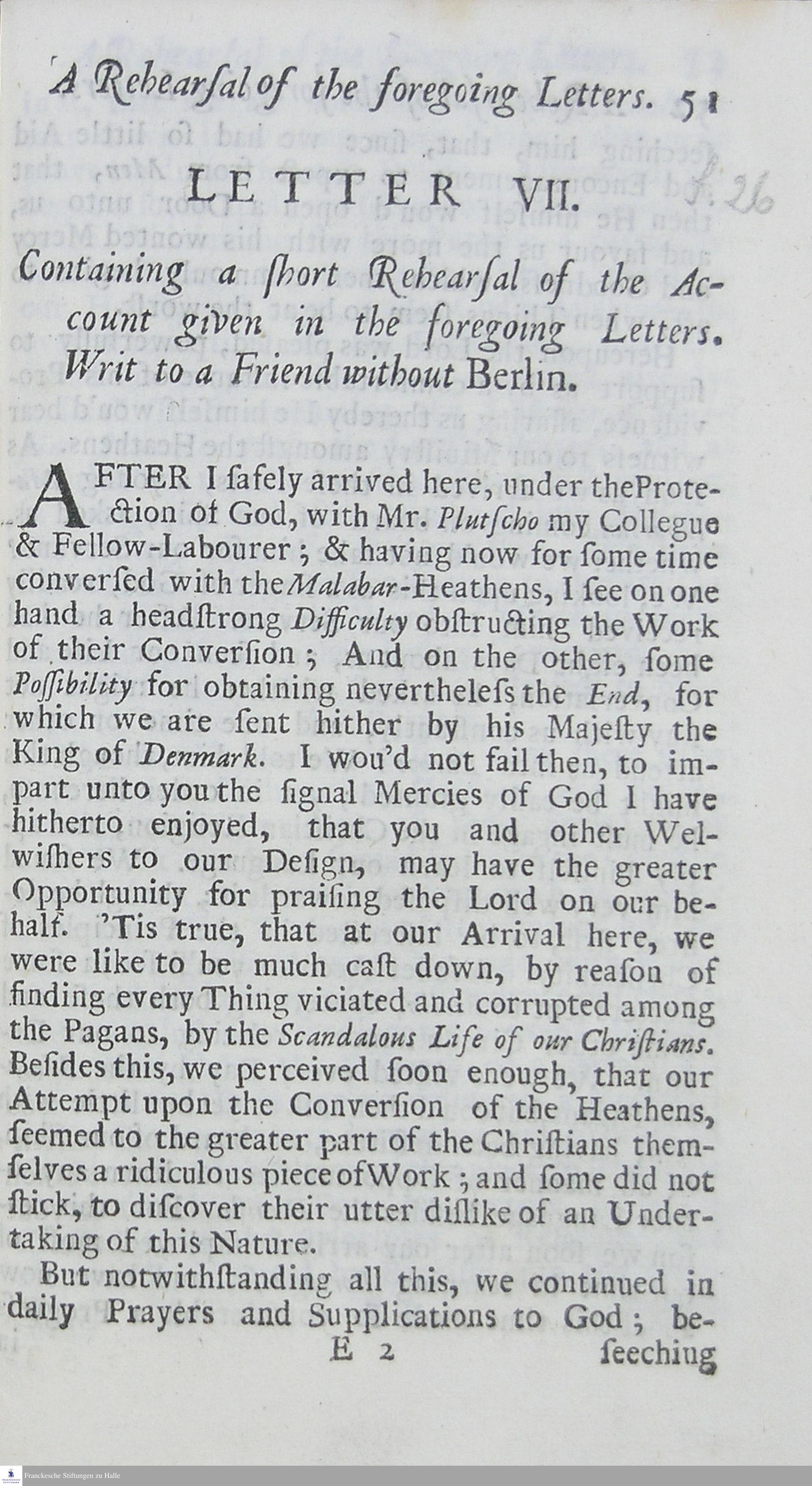 Propagation of the Gospel in the East : Being An Account of the Success Of Two Danish Missionaries, Lately sent to the East-Indies, For The Conversion Of Thf [!] Heathens in Malabar ; In several Letters to their Correspondents in Europe ... / [Bartholomäus Ziegenbalg; Heinrich Plütschau; Hrsg.: Anton Wilhelm Böhme]