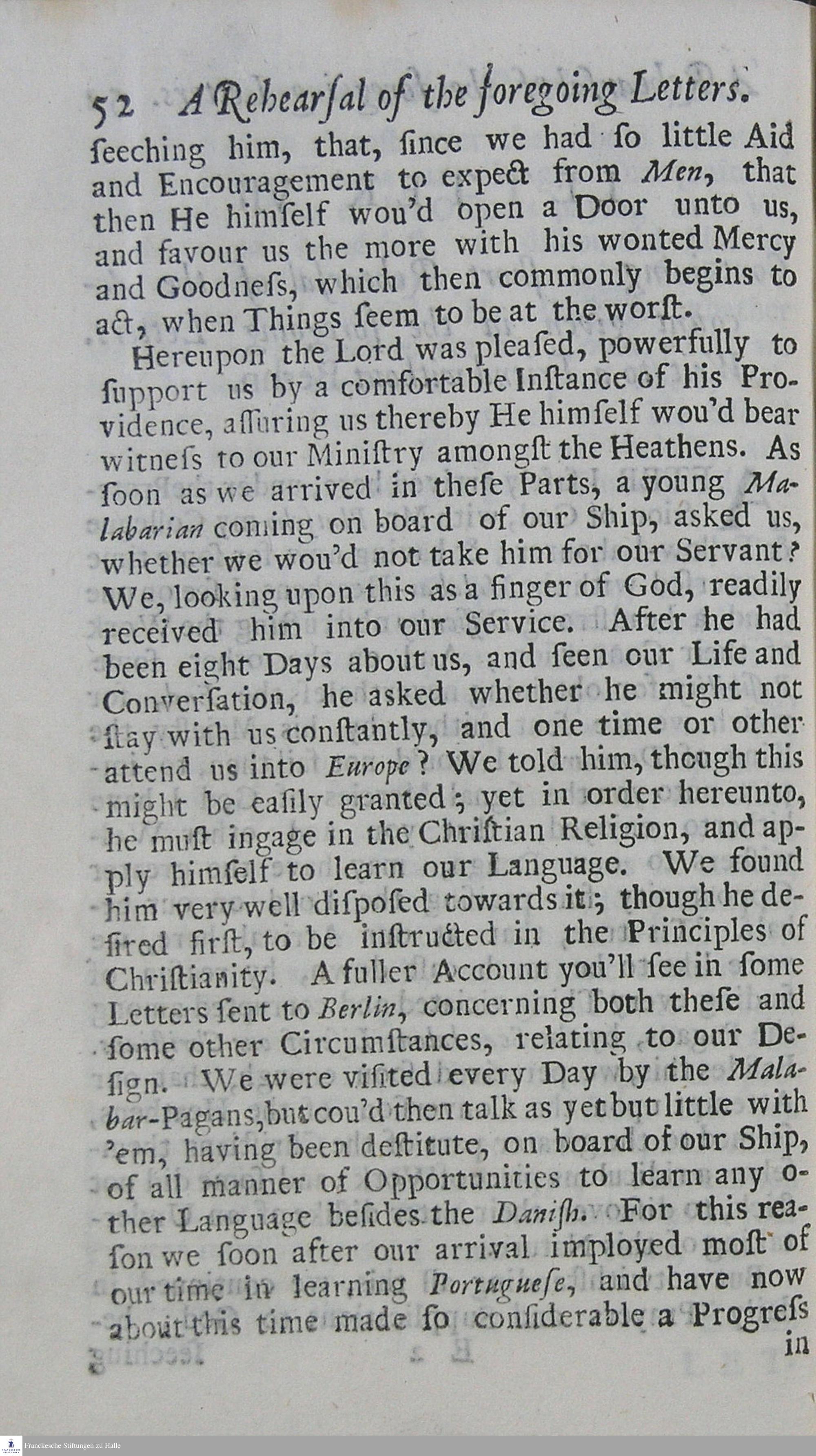 Propagation of the Gospel in the East : Being An Account of the Success Of Two Danish Missionaries, Lately sent to the East-Indies, For The Conversion Of Thf [!] Heathens in Malabar ; In several Letters to their Correspondents in Europe ... / [Bartholomäus Ziegenbalg; Heinrich Plütschau; Hrsg.: Anton Wilhelm Böhme]
