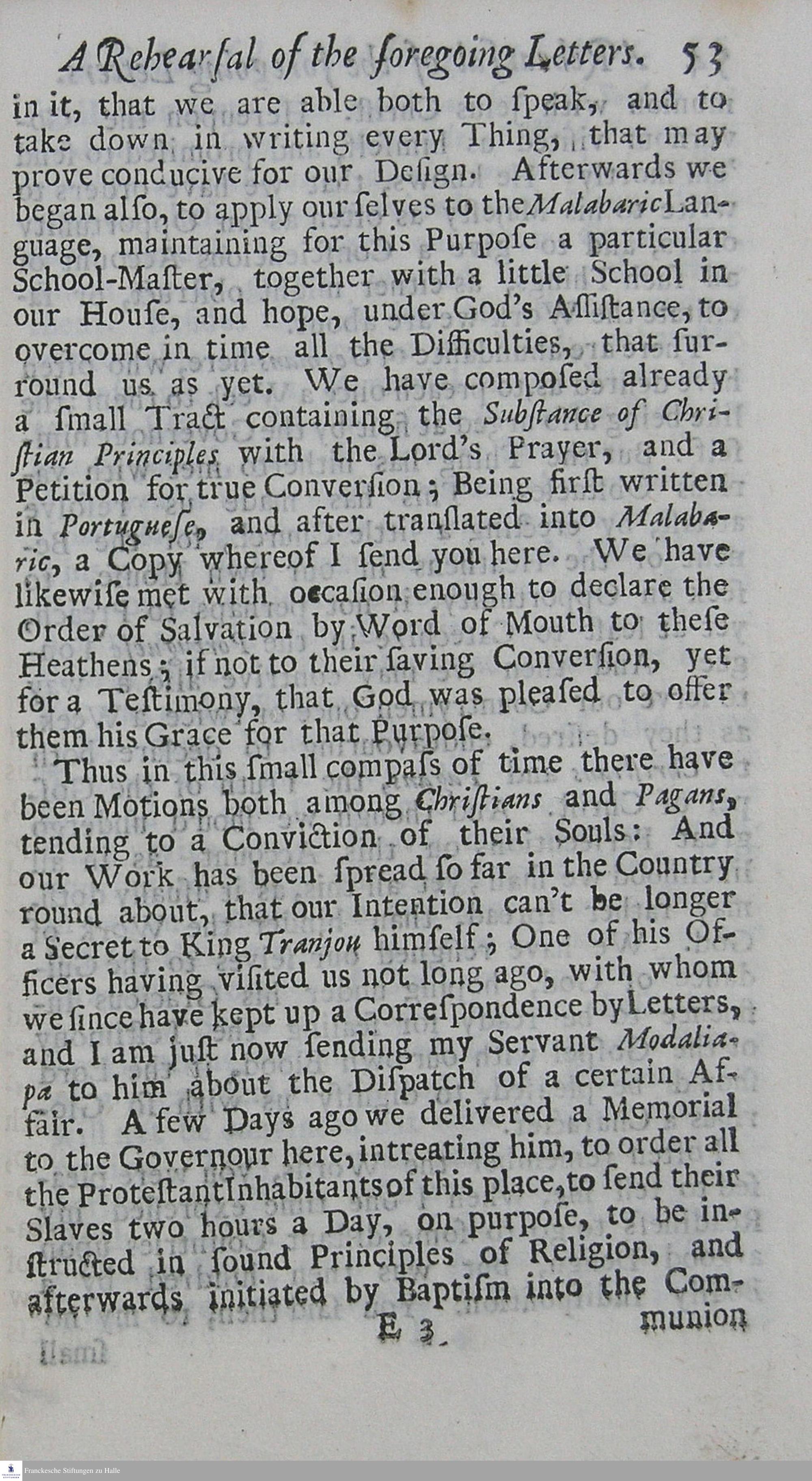 Propagation of the Gospel in the East : Being An Account of the Success Of Two Danish Missionaries, Lately sent to the East-Indies, For The Conversion Of Thf [!] Heathens in Malabar ; In several Letters to their Correspondents in Europe ... / [Bartholomäus Ziegenbalg; Heinrich Plütschau; Hrsg.: Anton Wilhelm Böhme]