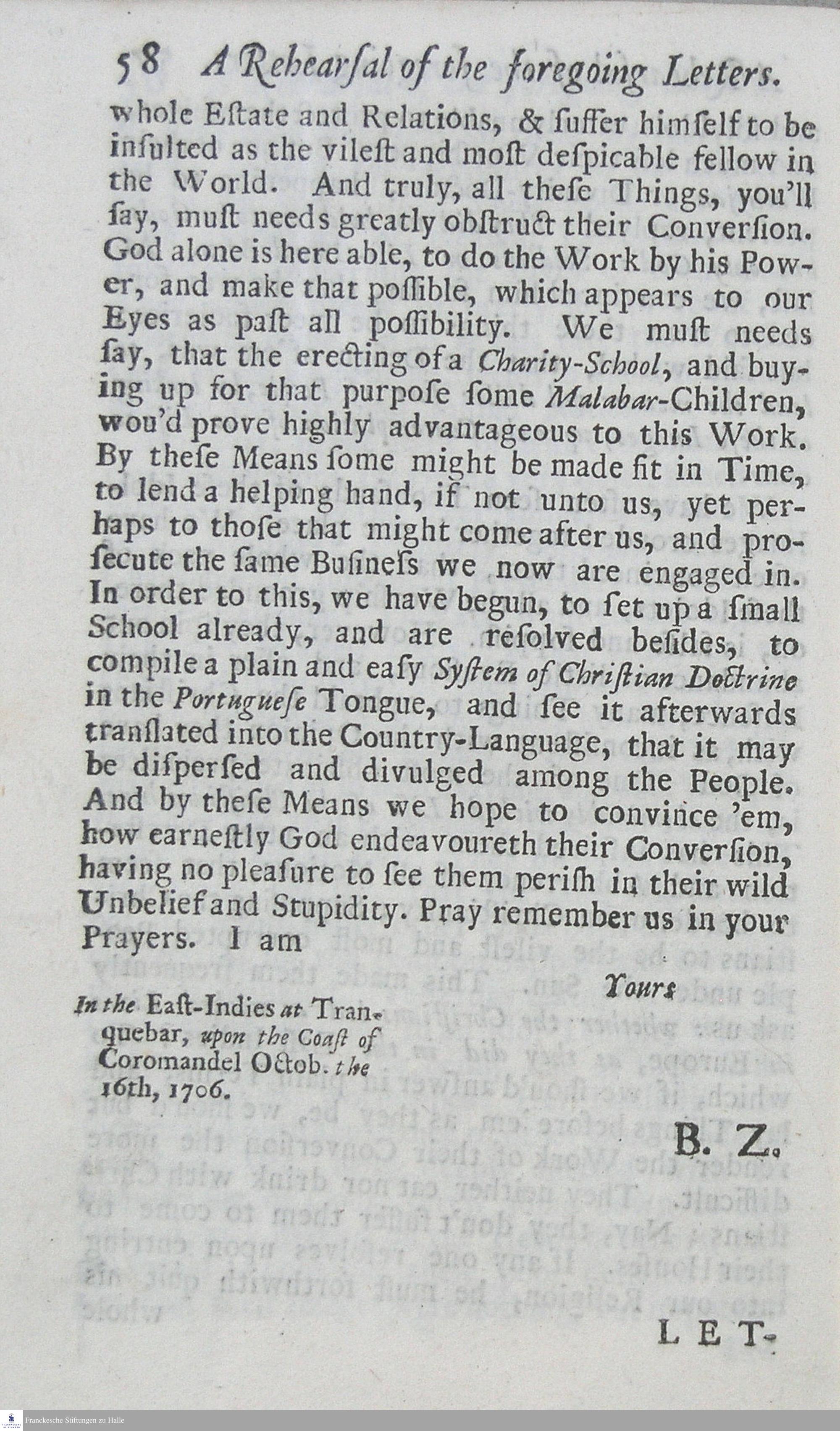 Propagation of the Gospel in the East : Being An Account of the Success Of Two Danish Missionaries, Lately sent to the East-Indies, For The Conversion Of Thf [!] Heathens in Malabar ; In several Letters to their Correspondents in Europe ... / [Bartholomäus Ziegenbalg; Heinrich Plütschau; Hrsg.: Anton Wilhelm Böhme]