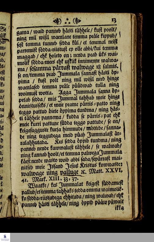 Missuggused Need waimolikkud södda-riistad on/ ning Kuida meie nendega omma hinge waenlase wasto peame söddima ... / Se önnis Kaplan ning Koolmeister Juhhan Mrosterus Piirsalo Kappellis ma-eti Mihkli-Ku 4mal päwal 1726 Aastal