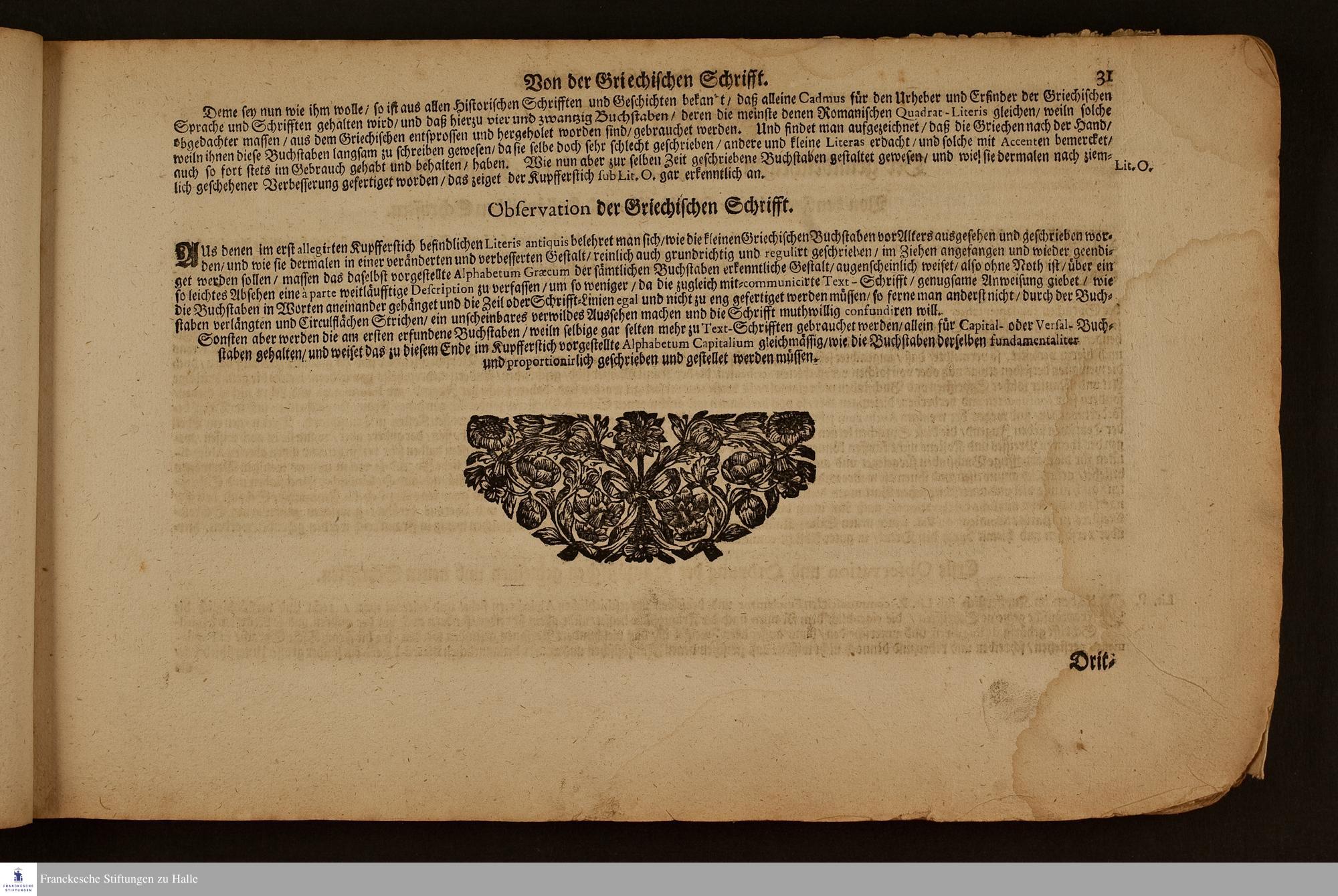Anderer Theil/ Zur Grundrichtigen Demonstration und Eintheilung der Lateinischen Cursiv-Rotund- und Romanischen/ auch Hebräischen/ Griechisch-Französich- und Italiänischen Schrifften.