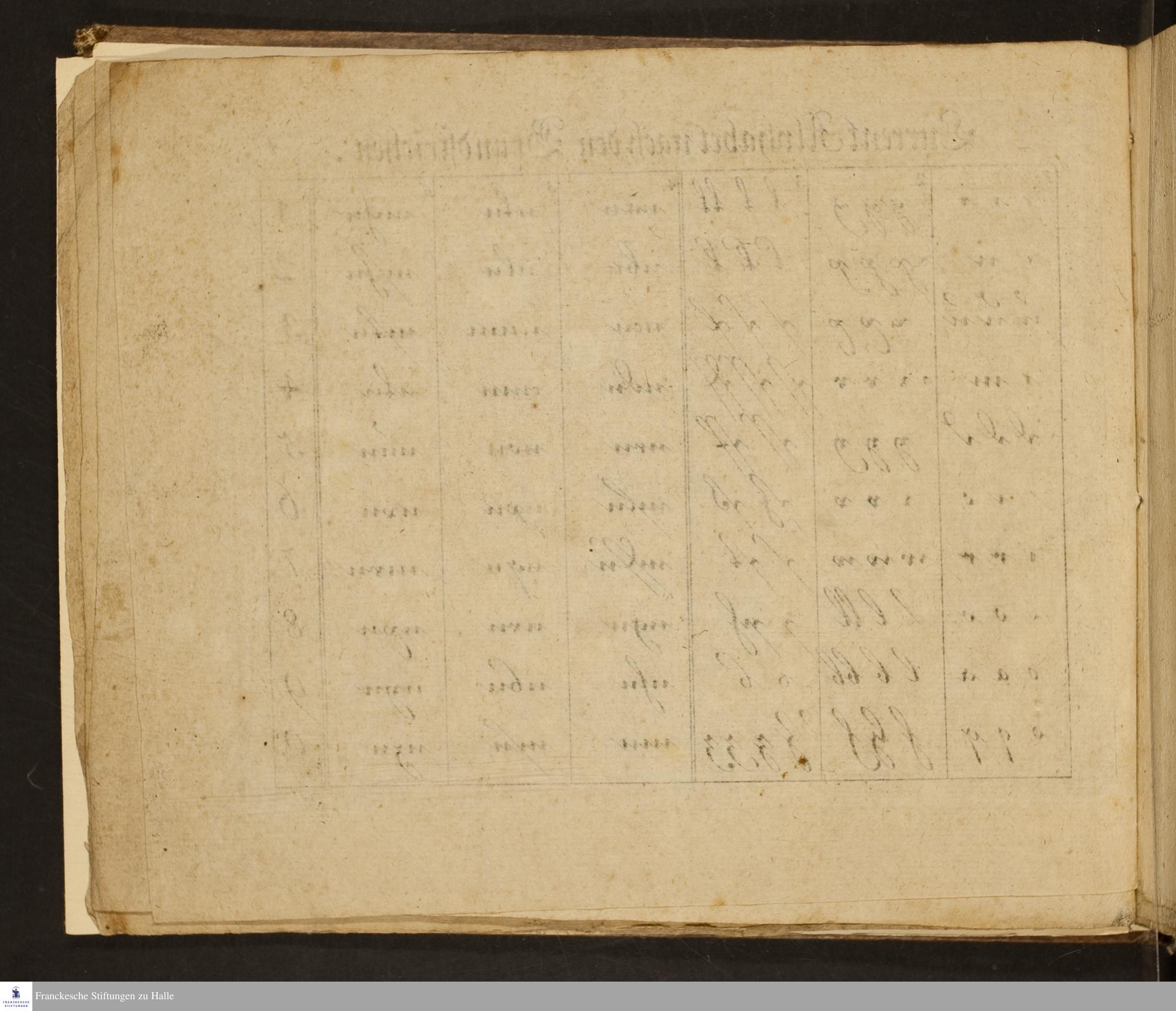 Neue Vorschriften zum Gebrauch der Schulen in den Anstalten des Waisenhauses : bestehend in 12 Blatt teutsche Current, 8 Bl. Canzeley, 8 Bl. Lat. Curs., 18 Bl. Fractur, Römisch Rund u. Quadr. wie auch Griech. u. Hebr. Schrift / gestochen von C. G. Liebe Universitäts Kupferstecher zu Halle