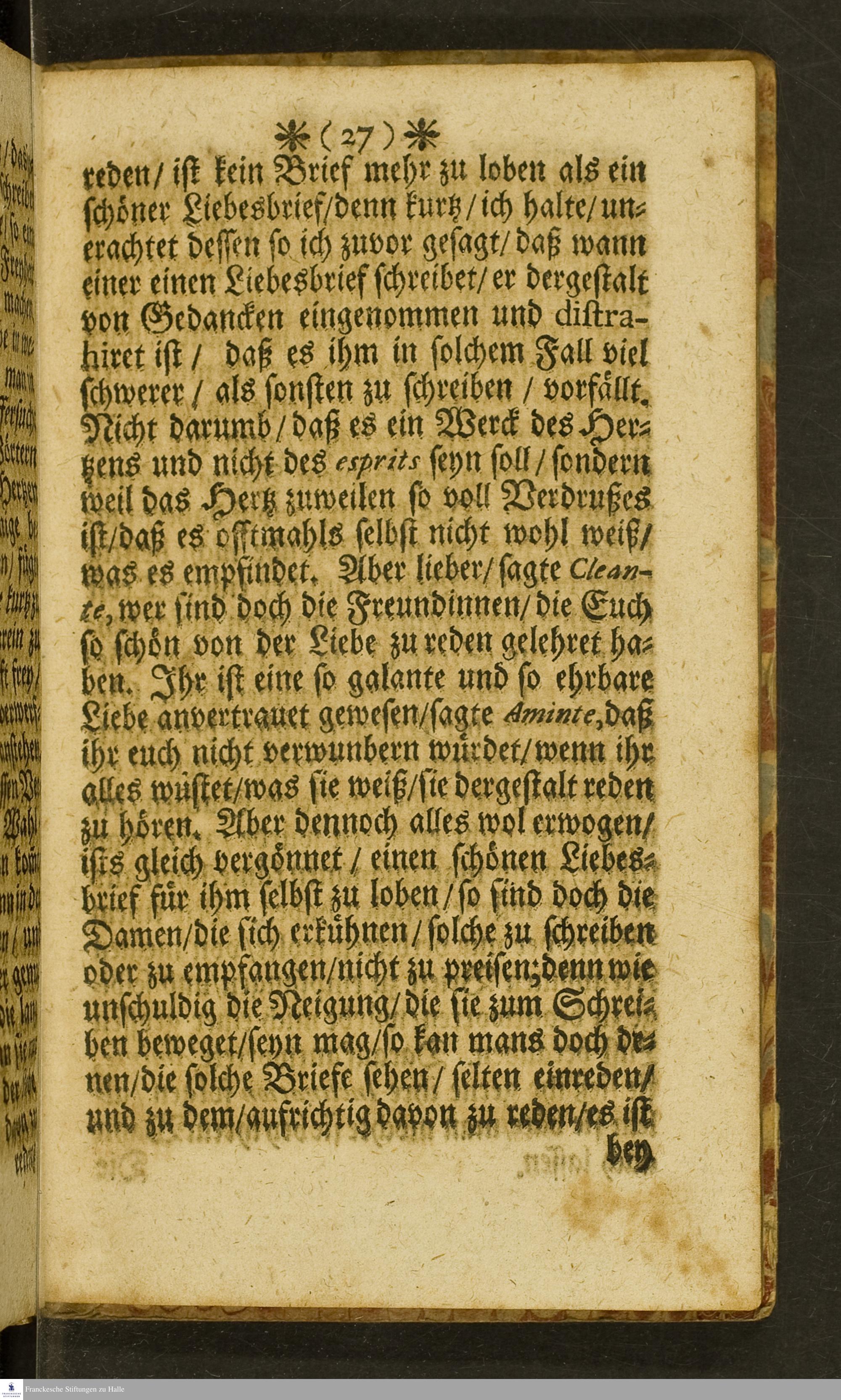 Anleitung allerhand Ernst- und Schertz-Briefe Oder wie es die Frantzosen nennen, Lettres Serieuses, Galantes & Billets doux zu schreiben : Aus unterschiedenen Frantzösischen Autoren zusammengetragen und Teutsch gegeben durch / C. Deshayes, Frantzösischen Sprach-Meister zu Halle in Magdeb.