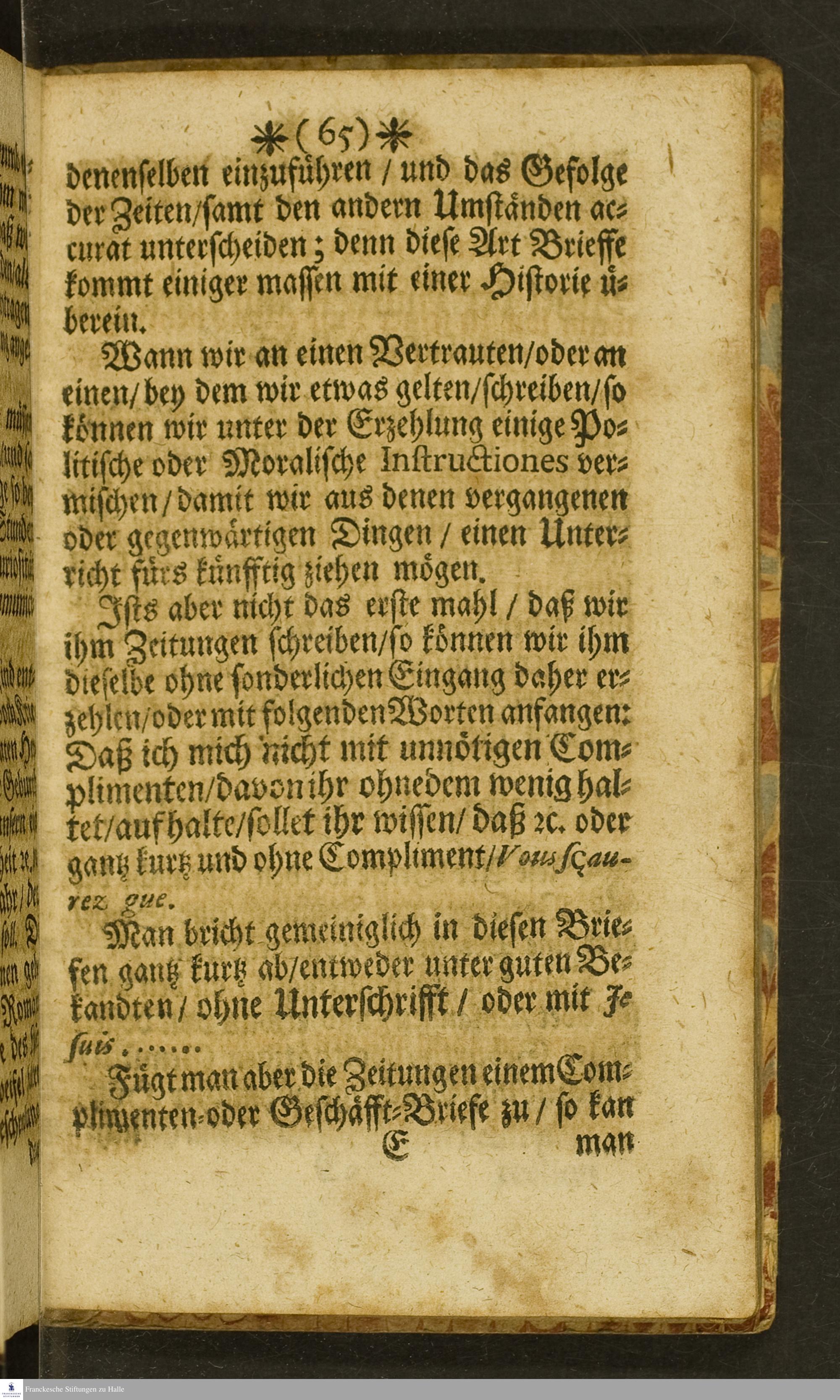 Anleitung allerhand Ernst- und Schertz-Briefe Oder wie es die Frantzosen nennen, Lettres Serieuses, Galantes & Billets doux zu schreiben : Aus unterschiedenen Frantzösischen Autoren zusammengetragen und Teutsch gegeben durch / C. Deshayes, Frantzösischen Sprach-Meister zu Halle in Magdeb.