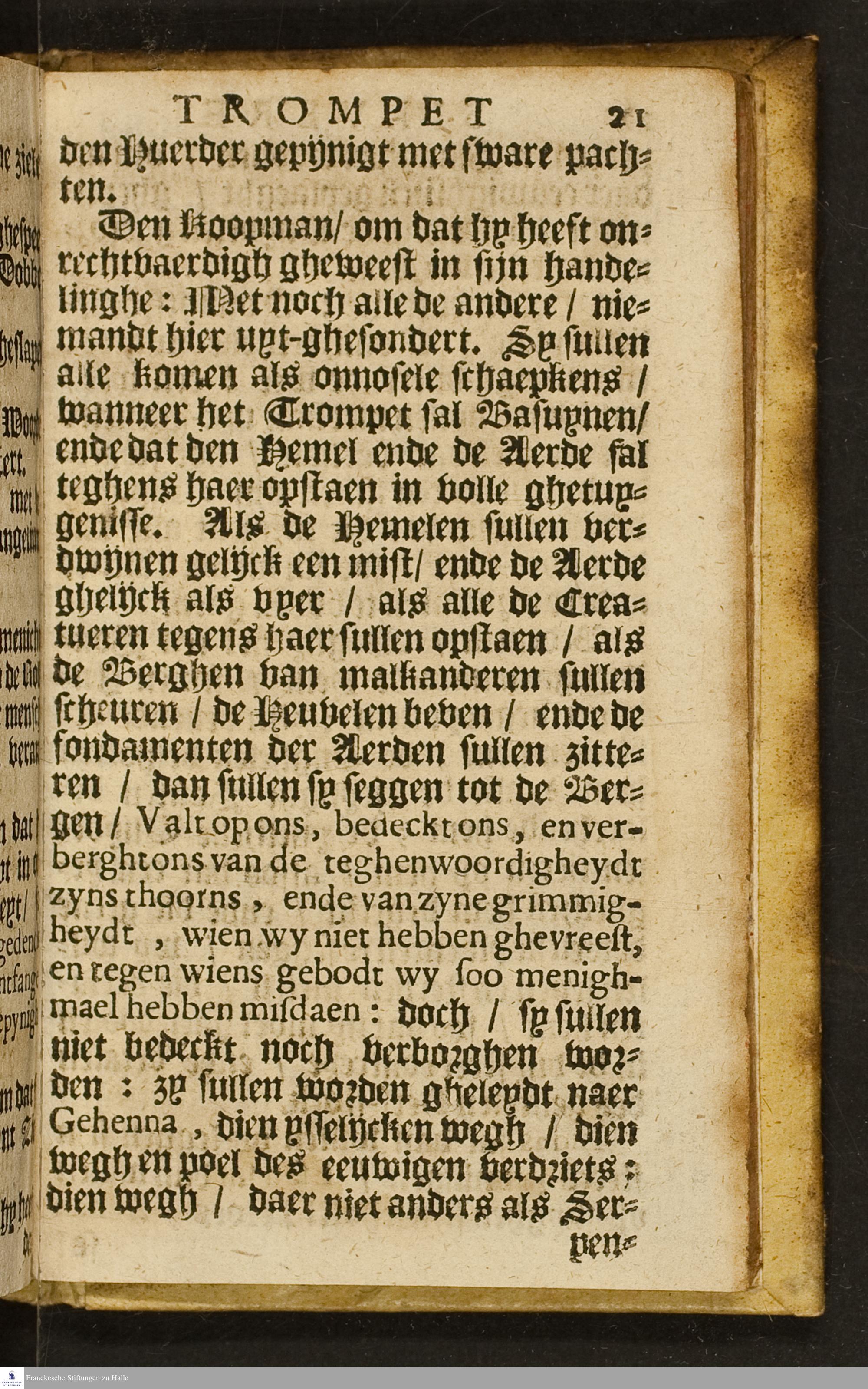 Gouden Trompet Blasende Alarm, Alarm, ten Oordeel / By Jan Andries, Dienser des Goddelijcken Woords ... Hier is oock by-gevoeght 't Zilvere Trompet, Onewaeckende de Zielenten Oordeel By Hendrick Smith, D. in de H. Godtheyt. Wt het Engelsch vertaelt door Willem Christiaensz