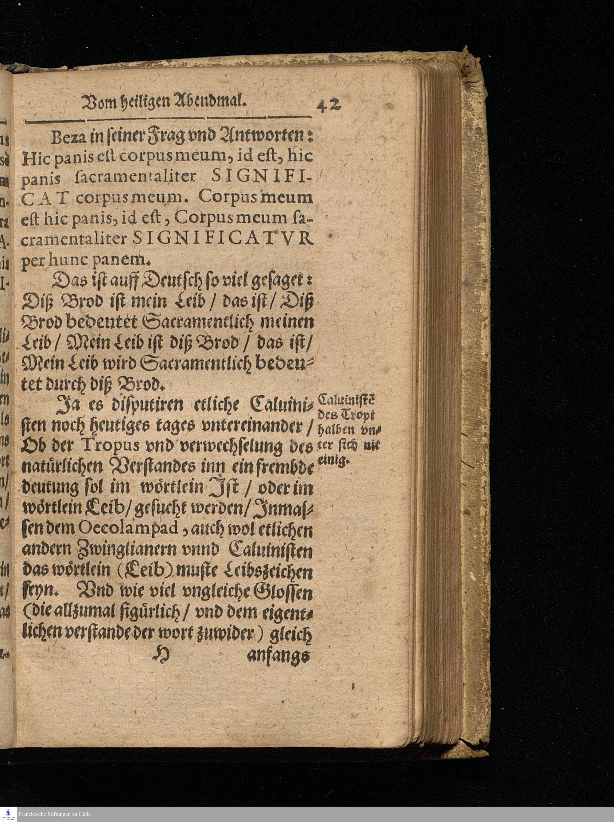 Gründliche || Verantwortung/|| Der || Vier Streitigen || Artickeln: Vom Heiligen || Abendmahl: Von der Person Christi:|| Von der H. Tauffe/ vnd Ewiger || F#ersehung Gottes.|| Wie dieselbige inn Theses || vnd Antitheses kürtzlich verfasset/ vnnd || in jungst verrichter Visitation der Kir=||chen vnd Schulen ... || der Chur Sachsen zu || vnterschreiben vorgelegt || worden.|| Gestellet || Durch die zu ermeldter Visitation || verordnete Theologen.||
