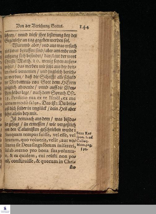 Gründliche || Verantwortung/|| Der || Vier Streitigen || Artickeln: Vom Heiligen || Abendmahl: Von der Person Christi:|| Von der H. Tauffe/ vnd Ewiger || F#ersehung Gottes.|| Wie dieselbige inn Theses || vnd Antitheses kürtzlich verfasset/ vnnd || in jungst verrichter Visitation der Kir=||chen vnd Schulen ... || der Chur Sachsen zu || vnterschreiben vorgelegt || worden.|| Gestellet || Durch die zu ermeldter Visitation || verordnete Theologen.||