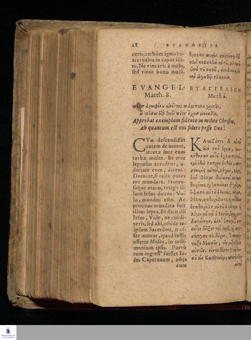 EUANGELIA TE || KAI EPISTOLAI TŌN KY-|| riakōn kaì heortastikōn hēmerōn hellenistì || kaì romaistì.||metà tōn distíchōn kyriakōn Christophórou Pelárgou hellenistì.|| EVANGELIA ET || EPISTOLAE DOMINI-||CORVM AC FESTORVM || dierum Græcè & Latinè.|| Vna cum distichis Dominicalibus Ioannis Stige-||lij, & festiualibus Bernhardi Bomgardij, correctius || quàm hactenus expressa.||