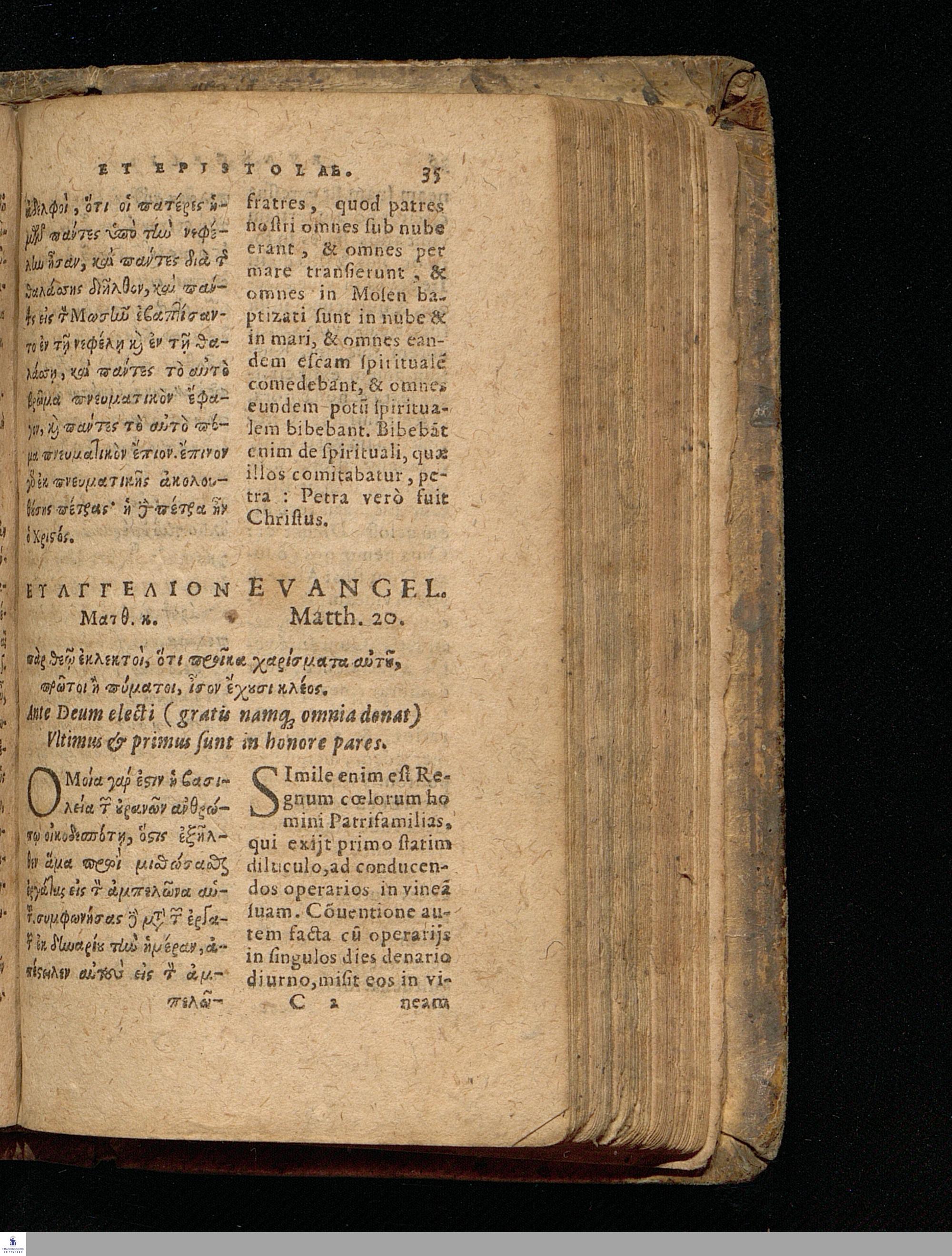 EUANGELIA TE || KAI EPISTOLAI TŌN KY-|| riakōn kaì heortastikōn hēmerōn hellenistì || kaì romaistì.||metà tōn distíchōn kyriakōn Christophórou Pelárgou hellenistì.|| EVANGELIA ET || EPISTOLAE DOMINI-||CORVM AC FESTORVM || dierum Græcè & Latinè.|| Vna cum distichis Dominicalibus Ioannis Stige-||lij, & festiualibus Bernhardi Bomgardij, correctius || quàm hactenus expressa.||