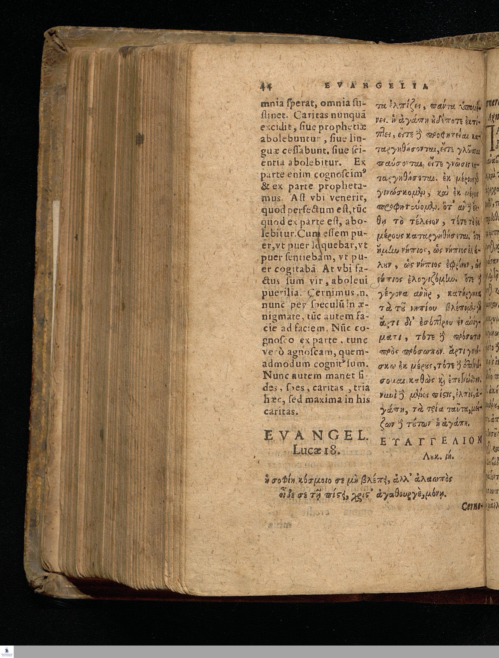 EUANGELIA TE || KAI EPISTOLAI TŌN KY-|| riakōn kaì heortastikōn hēmerōn hellenistì || kaì romaistì.||metà tōn distíchōn kyriakōn Christophórou Pelárgou hellenistì.|| EVANGELIA ET || EPISTOLAE DOMINI-||CORVM AC FESTORVM || dierum Græcè & Latinè.|| Vna cum distichis Dominicalibus Ioannis Stige-||lij, & festiualibus Bernhardi Bomgardij, correctius || quàm hactenus expressa.||