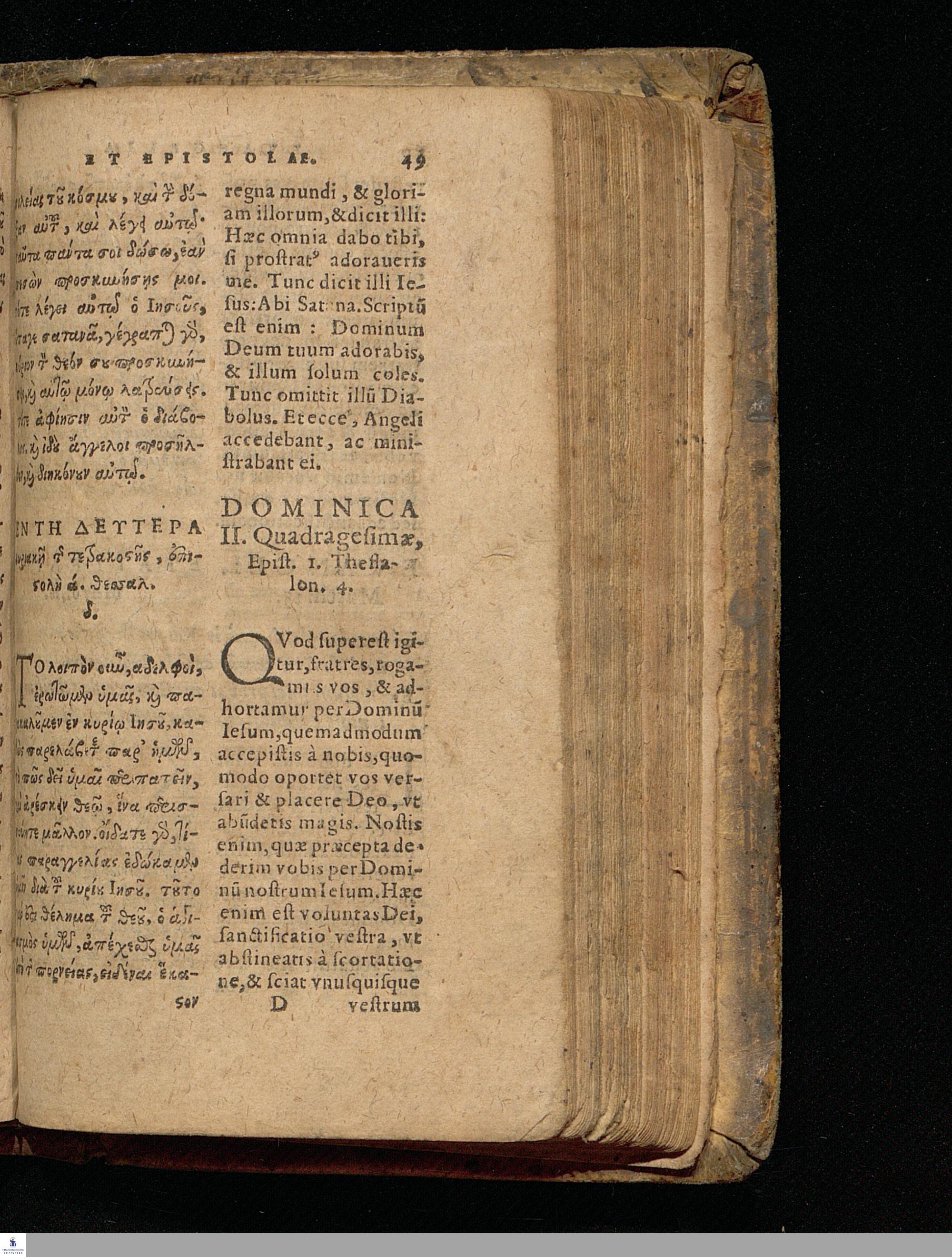 EUANGELIA TE || KAI EPISTOLAI TŌN KY-|| riakōn kaì heortastikōn hēmerōn hellenistì || kaì romaistì.||metà tōn distíchōn kyriakōn Christophórou Pelárgou hellenistì.|| EVANGELIA ET || EPISTOLAE DOMINI-||CORVM AC FESTORVM || dierum Græcè & Latinè.|| Vna cum distichis Dominicalibus Ioannis Stige-||lij, & festiualibus Bernhardi Bomgardij, correctius || quàm hactenus expressa.||