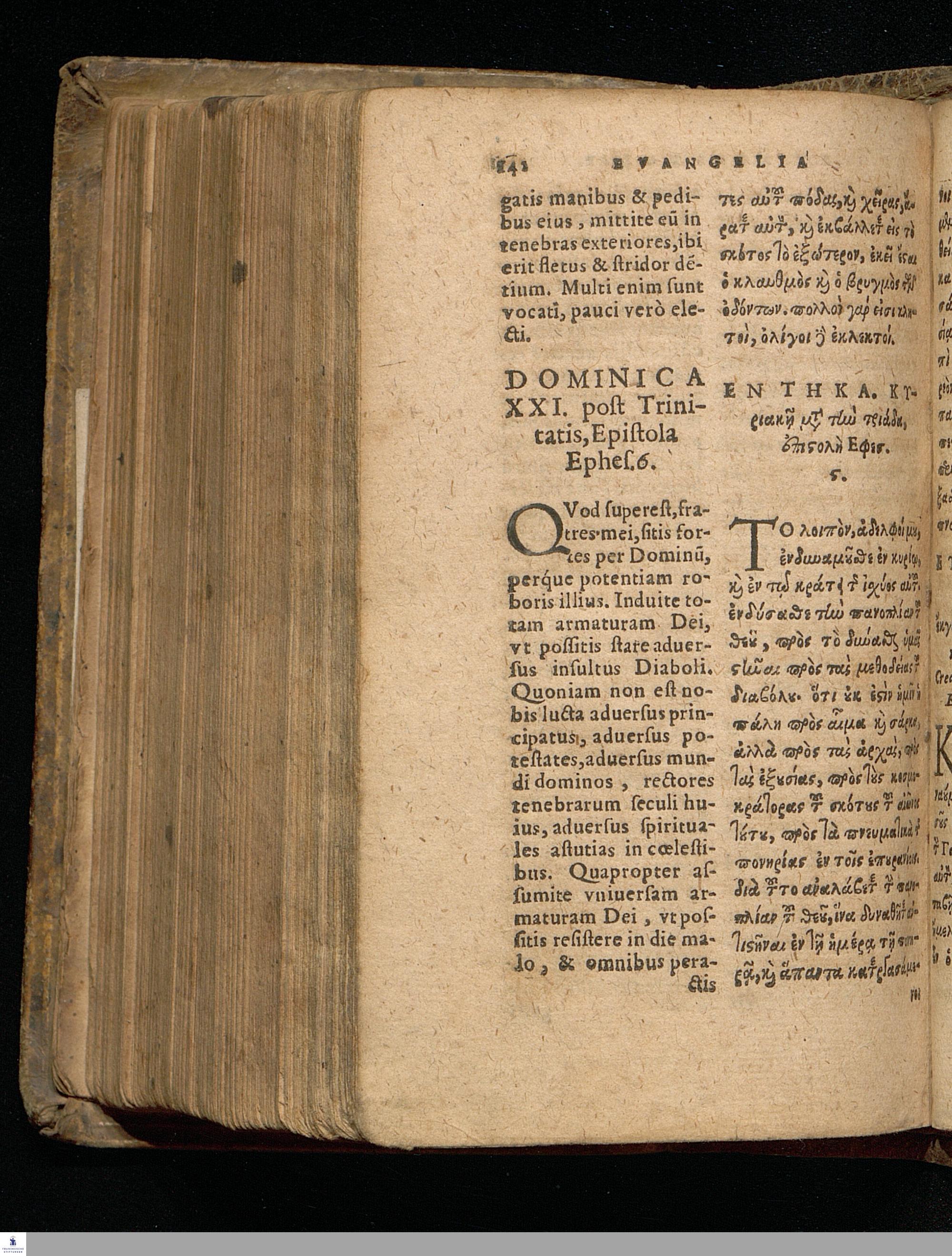 EUANGELIA TE || KAI EPISTOLAI TŌN KY-|| riakōn kaì heortastikōn hēmerōn hellenistì || kaì romaistì.||metà tōn distíchōn kyriakōn Christophórou Pelárgou hellenistì.|| EVANGELIA ET || EPISTOLAE DOMINI-||CORVM AC FESTORVM || dierum Græcè & Latinè.|| Vna cum distichis Dominicalibus Ioannis Stige-||lij, & festiualibus Bernhardi Bomgardij, correctius || quàm hactenus expressa.||