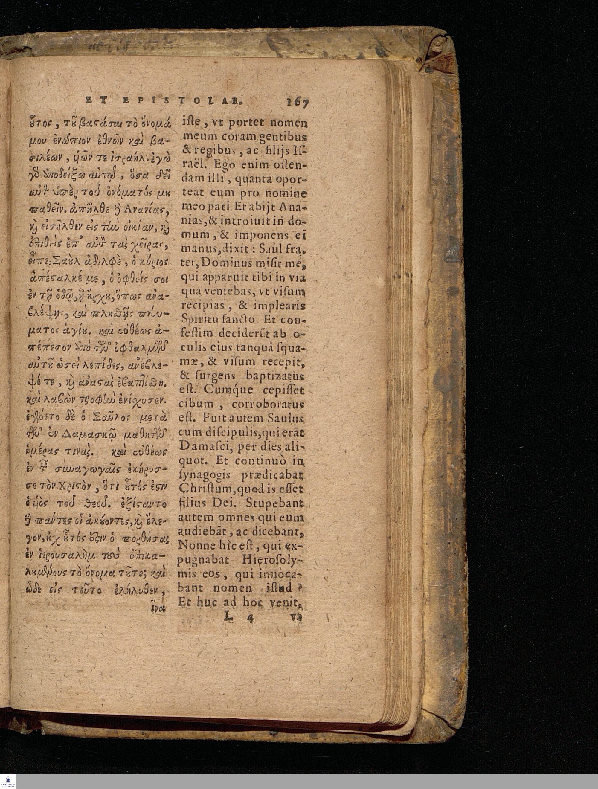 EUANGELIA TE || KAI EPISTOLAI TŌN KY-|| riakōn kaì heortastikōn hēmerōn hellenistì || kaì romaistì.||metà tōn distíchōn kyriakōn Christophórou Pelárgou hellenistì.|| EVANGELIA ET || EPISTOLAE DOMINI-||CORVM AC FESTORVM || dierum Græcè & Latinè.|| Vna cum distichis Dominicalibus Ioannis Stige-||lij, & festiualibus Bernhardi Bomgardij, correctius || quàm hactenus expressa.||